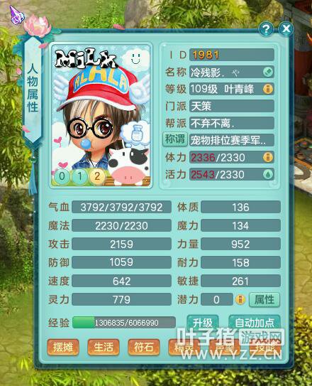 接下来就是九天揽月区第一盟主天策——【冷残影.や】109天策的装备属性宝宝展示了