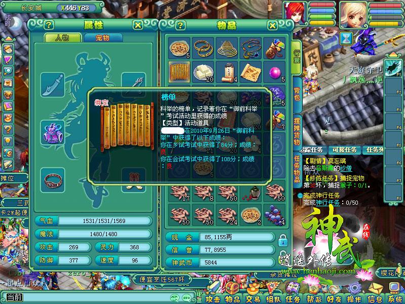 御前科举选拔贤能 如果参与了“在线抢答”还没有让你尽兴,不要担心,还有唐王举办的“御前科举”等着你。在活动中,玩家要通过乡试、会试夺取殿试资格,继而在殿试中比拼才华。只要你有才,就有精彩奖励等着你,成功从众多玩家中脱颖而出的胜利者,可以获得巨额抵用金及特殊称谓作为奖励,还有机会获得珍兽呢! |