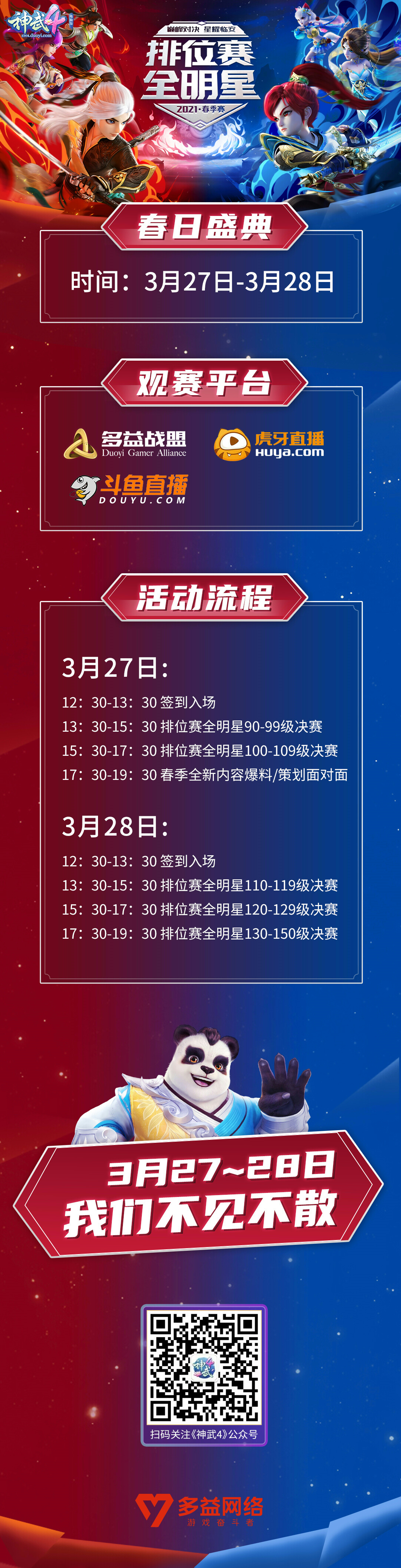 春季盛典,缘聚杭州!《神武4》电脑版春日盛典即将于3月27日至3月28日在浙江杭州正式拉开帷幕。届时,《神武4》电脑版主创团队将到达现场,为翘首期待的三界少侠带来2021春季全新内容深度爆料,更有策划面对面、第十六届排位赛全明星线下总决赛等精彩环节,期待与各位少侠名士共赴盛会。 春日盛典报名火爆开启 海量好礼等你来拿 3月27日至3月28日,《神武4》电脑版春日盛典将在浙江省杭州市下城区康宁街80号海蓝国际电竞数娱中心E座5层正式拉开帷幕,第十六届排位赛全明星线下总决赛也将于盛典现场火爆开战,持续为三界少侠解锁更刺激回合策略博弈、更畅爽多元快乐交友体验。 【《神武4》电脑版春日盛典报名火爆开启】 【《神武4》电脑版春日盛典报名时间】 3月12日12:00至3月28日21:00报名期间,每一位神武少侠都可以前往长安城春日庆典使者或武天处报名参与春日盛典、第十六届排位赛全明星线下观战,也可以在春日盛典活动现场报名。成功完成现场签到的玩家将获得内含专属称谓、聊天标识以及还童丹、修炼丹、三界秘录、随机五宝等实用道具的盛典礼包一份。 值得一提的是,3月21日前参与报名的玩家还有机会获得实体纪念品,更多详情可以前往长安城春日庆典使者或者武天处了解。 全明星总决赛现场打响 春季全新内容同步发布 春日盛典活动现场,《神武4》电脑版第十六届排位赛全明星90至99级、100至109级、110至119级、120至129级、130至150级线下总决赛热血开战,代表着《神武4》电脑版五大分组段最高竞技水平的十支顶尖战队齐聚一堂,在无数玩家的共同见证下,为争夺象征终极荣耀的全明星总冠军而浴血奋战。 【《神武4》电脑版第十六届排位赛全明星线下总决赛时间安排】 3月27日17:30至19:30,《神武4》电脑版主创团队也将到达春日盛典活动现场,并通过全新内容爆料、策划面对面等环节,为大家带来《神武4》电脑版全新内容最新爆料以及未来更新规划,持续为三界少侠带来更富新鲜感与趣味性的快乐游戏体验。 【《神武4》电脑版春日盛典线下活动安排】 春日盛典、第十六届排位赛全明星线下观战报名正式开启,聊天标识、专属称谓等你来拿;主创团队前往助阵,2021春季全新内容正式发布,更多惊喜现场为你揭晓!《神武4》电脑版春日盛典、第十六届排位赛全明星线下观战报名正式开启,现在就喊上小伙伴一起参与报名吧! 欢迎在下方留言讨论,了解更多幻唐志的相关内容请关注 叶子猪幻唐志专区。 [编辑:ssc]