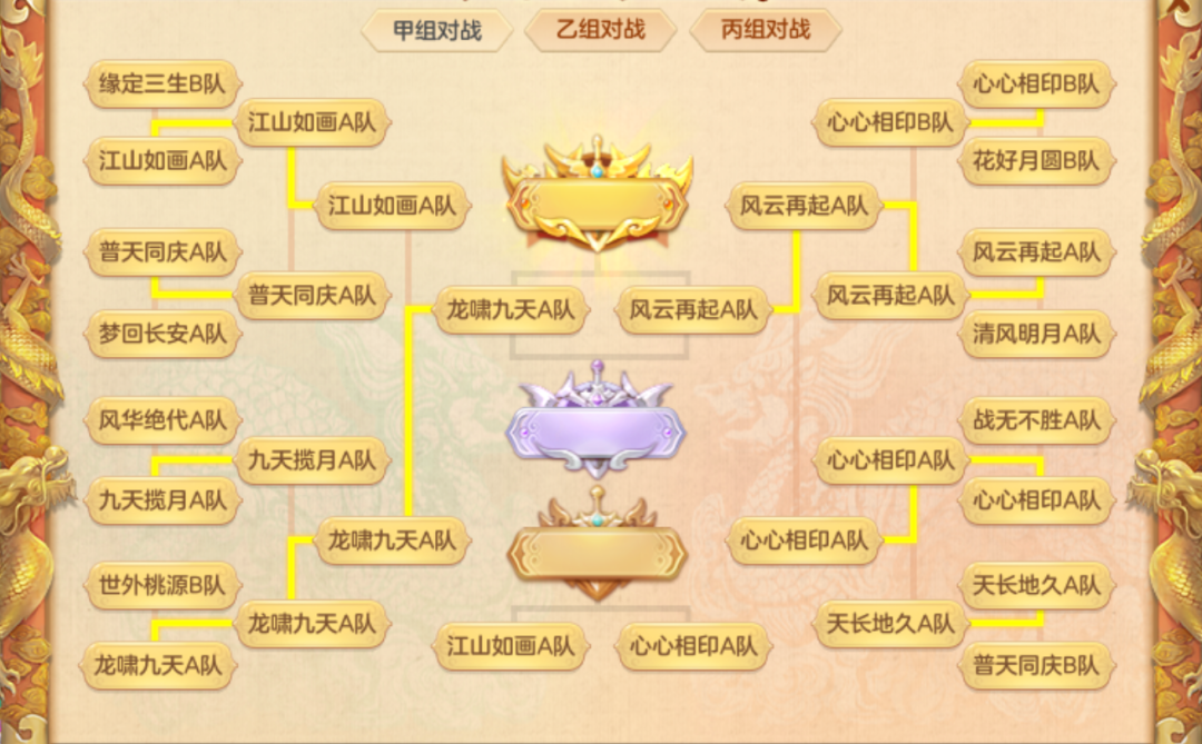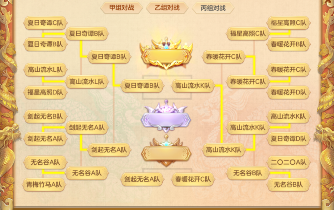 《神武4》电脑版第103届神武之战总决赛即将打响,想一睹为快的玩家,可以前往神武天神处进行观看,下面为大家带来第103届神武之战对战表。 神武之战甲组对战表:龙啸九天A队VS风云再起A队 神武之战乙组对战表:清风明月E队VS英雄本色A队 神武之战丙组对战表:夏日奇谭B队VS高山流水K队 总决赛将在今晚20:00开始,大家记得前往长安城神武天神处为自己喜爱的队伍加油助威啦! 欢迎在下方留言讨论,了解更多幻唐志的相关内容请关注 叶子猪幻唐志专区。 [编辑:ssc]