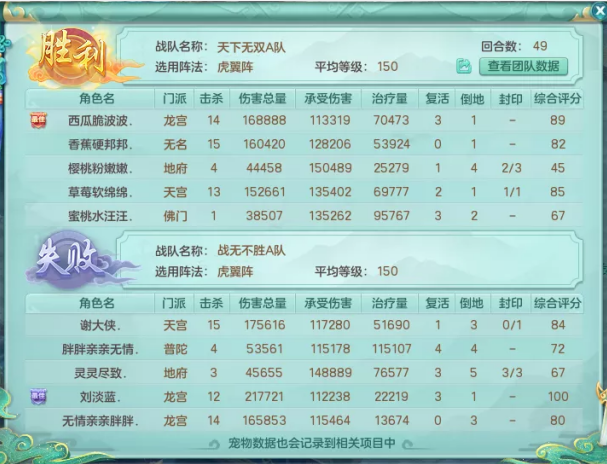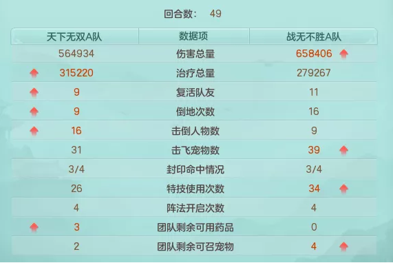 《神武4》电脑版第108届神武之战总决赛于昨晚圆满结束,天下无双A队、战无不胜A队这两支老牌劲旅狭路相逢!最终,天下无双A队凭借坚决果断的绝地反击问鼎冠军;战无不胜A队则痛失好局,遗憾获得亚军;壮志凌云A队击败沉鱼落雁A队,最终荣登三甲。恭喜取得优异成绩的各支战队! 下面,小吉祥就为大家带来本届神武之战总决赛的对战解析:观战方天下无双A队VS对战方战无不胜A队。 双方阵容及阵法分析 阵容方面: 天下无双A队:佛门、地府、力天宫、无名谷、龙宫。 战无不胜A队:普陀、地府、力天宫、双龙宫。 阵法方面: 双方均选择攻守兼备“虎翼阵”。 速位争夺及首发宠物 优势速位: 全场1、2速,输出1、2速均被战无不胜A队拿到!尤其是5号位龙宫速度竟高于对手双物理! 首发宠物: 双方同以剑气宠为核心,不同在于对战方额外带有蚩尤及群法。 双方基础分析 对战方双辅助手握1、2速,掌握了绝对的特技先手权,这对攻防两端均有极大影响。另外,双输出也可依靠速度优势展开点杀压制。如此优势在手,对战方如能在点杀与清宠间实现结合,将有较大几率取胜。 观战方虽在竞速中失利,但双物理具有极强的爆发力!观战方取胜关键在于:能否凭借双物理的点杀能力展开连续压制,这就需要对出手时机有精妙的掌控!先固防守,伺机进攻或许是观战方最合理的选择。 下面,就请大家与小吉祥一起来欣赏这场精彩的巅峰对决: 比赛战报 稳健布局攻守交替 强攻显威双杀破局 第1-5回合 双方均以清宠展开布局。对战方有普陀“灵耀九州”加强法系伤害,观战方则有佛门“伽蓝战气”辅助双物理,可谓旗鼓相当!双方沉稳布局,寻找对手破绽。 第6-10回合 对战方率先打破僵局:以地府“幽冥同旅”为铺垫,双法系配合宠物强点观战方无名谷成功,顺利拿下首杀!? 观战方深知对手点控结合的威力,佛门先以“慈悲渡世”拉起无名谷,防止对手控尸;而后再以“降生咒”跟进保护,防守非常到位!令对手完全无法展开后续压制。 对战方主攻,观战方主防,表现均可圈可点。 第11-15回合 双方迎来关键的阵技对决!对战方却出现明显失误:天宫人、宠竟先后以“平砍”出手,在阵技回合毫无贡献;而观战方三输出则顺利出击,实现了阵技收益的最大化!阵技过后,观战方适时策动反击:依靠龙宫“飞龙镇海”、无名谷“锢神”将对战方五号位龙宫击倒。 然而对战方的反击却更加犀利:即使观战方有佛门“降生咒”保护地府,却依然难逃对战方龙宫“龙隐”、地府“生死判”的双管齐下,地府因此惨遭击杀!之后对战方再接再厉,凭借龙宫“烽火连城”再将观战方天宫击倒!对战方凭借犀利的反击,以双杀再度建优。 第16-20回合 在此阶段,双方先后将对手地府击倒在地!在双方的阵技回合,观战法并未将地府拉起,地府也因此失去了关键的回复。而对战方地府则借助阵技将伤势回复过半。此消彼长之下,对战方优势更加明显。 涅槃换三意外惊喜 破釜沉舟绝境逆袭 第21-30回合 占据优势的对战方持续发起强攻:在观战方尚在防护地府之时,凭借龙宫“龙隐”将观战方佛门击倒。观战方虽也有反杀地府的表现,但依然与对手相去甚远。 转折发生在第28回合!对战方乘胜追击,以双龙宫“龙隐”率先将观战方地府补刀!而后再由地府“生死判”、天宫“嗜血连击”点杀观战方天宫,意图以一手双杀彻底终结比赛!然而,身处绝境的观战方却有起死回生之策:龙宫一手预判“涅槃重生”将倒地三人换起! 战至第30回合,观战方成功挽救危局。 第31-35回合 缓解了防守端的压力,观战方开始策动反击,目标依然是对手地府。然而对战方地府防护非常到位,尤其是“死亡契约”竟有8400+的气血回复,彻底瓦解了观战方攻势!观战方进攻不顺,地府、天宫、龙宫三人均仅剩一宠!失利的阴云再次笼罩,他们还有何良策改变局势呢? 第36-40回合 观战方孤注一掷!抓住对手普陀因多次使用“蛇胆酒”而大量降防的战机,天宫、无名谷联动出手,一举击杀对手普陀!而后攻势不减,再斩对手天宫!对战方天宫虽触发“精灵之歌”,但依然难逃被观战方补刀的命运。 第39回合,对战方也使出了一招预判涅槃!然而遭到补刀的天宫却意外“神佑”,打乱了对战方的战术!地府这一招“涅槃重生”只换回普陀一个单位!并未起到应有的作用。 观战方犀利的反攻令对手措手不及,对战方苦心建立的优势竟在观战方在5回合的强攻之下荡然无存! 第41-49回合 对战方虽然优势不再,但双辅助手握速度优势,整体局面依然可控。然而意外再次到来:第42回合,对战方本是普陀施展涅槃,地府开启阵技的战术,却因己方地府触发速度“卦象”而功亏一篑,地府竟然在回合末尾将阵技开启!危机当前,却白白浪费阵技,对战方处境更为艰难。 而在第46回合,对战方地府可以再度施展“涅槃重生”之时,却惨遭观战方群法宠物恐怖。比赛至此,对战方多点倒地且被观战方地府“阎罗炼狱”控制,已是回天乏术。 最经,经过49回合的精彩博弈:观战方凭借绝境中的精彩反击,逆转对手夺冠,恭喜天下无双A队! 数据统计 比赛回顾: 1、对战方在伤害量上占据明显上风,这得益于他们比赛前期的出色表现!而观战方虽总体伤害量落后,但在收官阶段表现却极为强势,以伤害的“质量”击败了对手的“数量”。 2、战无不胜A队在比赛前中期:凭借精准的点杀控场一度接近胜利,然而关键时刻的双
