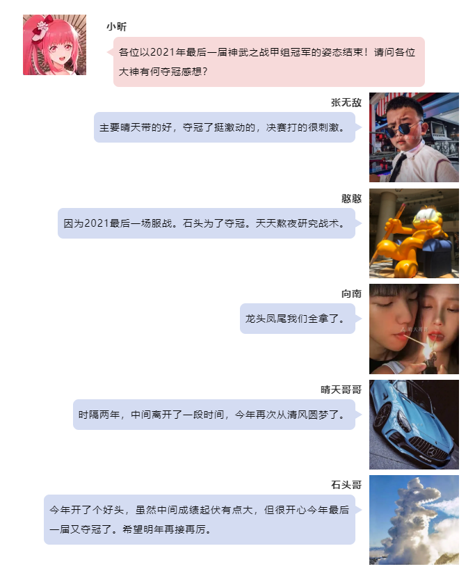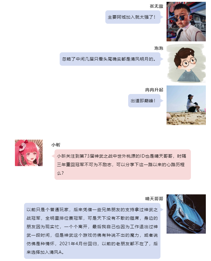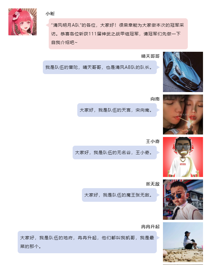 《神武4》电脑版第111届神武之战已经圆满落下帷幕,首先让我们恭喜清风明月A队,拿下第111届神武之战的冠军,今天小昕邀请到了他们来接受冠军采访,一起来了解一下吧! 最后小昕还为大家带来了冠军战队的大合影,大家一起来看看吧~ 另外,小昕还打探到了冠军团队的宠物信息!一起来看看吧~ 本届冠军采访到这里就结束了,祝愿大家在以后的神武之战中,都能取到好成绩! 欢迎在下方留言讨论,了解更多幻唐志的相关内容请关注 叶子猪幻唐志专区。 [编辑:ssc]