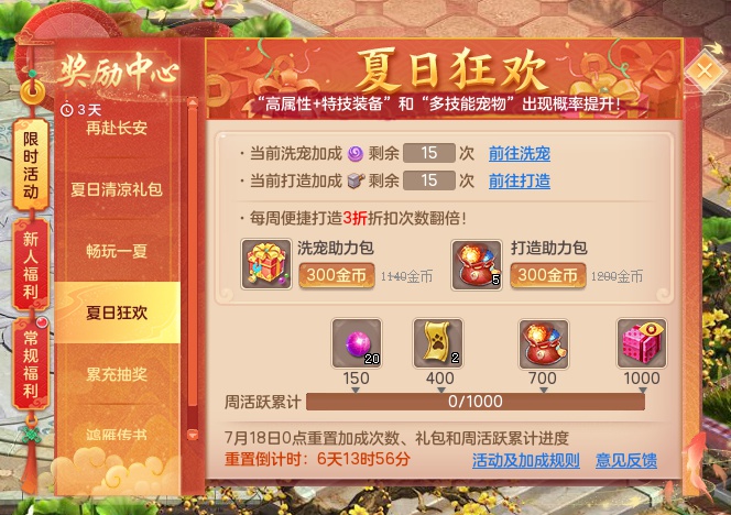 《神武4》电脑版夏季全新内容暨同名大服“夏院藏宝”7月8日正式开启,全新庭院玩法正式上线,探秘玩法同步登场,新一轮战斗调整来袭,新时装、新头像等外观惊艳登场,暑期活动陆续上线,更多精彩内容与活动,一起前往神武三界体验吧! 全新庭院玩法正式上线 7月8日更新维护后,全新庭院玩法正式上线。游戏新增百趣集系统,角色等级≥30级的少侠可解锁。系统包括秘宝集、神工集、古今集、海川集、田园集,参与相应玩法可将收藏品记录至百趣集中。同时,新增探秘玩法,角色等级≥30的少侠在各场景中有概率遇到可采集的秘宝,点击采集有概率获得秘宝并解锁将其收藏。 庭院农产品和食品新增等级,并新增愈命果、归气果等新食品产出。同时将新增农仓,少侠可将农场相关产品存入农仓中,生产宠也调整为在围栏中圈养。庭院新增小苑拾遗玩法,少侠前往同帮或好友庭院中可能遇到可拾取农产品的生产宠,完成小游戏即可获得部分农产品。 除此之外,社区地图优化,现有小区住户将自动迁至新小区。小区场景增加修炼宝箱,通天神殿也调整为在随机小区内开启。豪宅焕新来袭,全新社区庭院装饰紫蕴灵螺、仲夏漂流、彩瑚灵鱼池同步登场,伴你清凉一夏! 7月8日至8月18日期间,家园设计大赛正式开启,各位少侠可装点自己的美丽家园,参加比赛即有机会赢取周边大礼、限时称谓和游戏道具奖励! 全新外观登场 暑期活动陆续上线 本周更新维护后,全新外观焕新登场,新头像秀“百搭星君”和新时装“沧海月明”上架外观商城!还有两款全新坐骑“幽海冥鲨”和“潜水鸭”也将正式亮相。新宠物皮肤“芙蓉仙子·金柠沁心”和“灵犀·灵海潮汐”同步上线,在7月8日至7月14日将进行海洋系列宠物皮肤的节日拍卖。这个夏天,一起焕新一夏! 外观狂欢活动在7月8日到7月17日限时开启,在此期间购买人物时装、个性装饰、坐骑、头像秀将享受优惠折扣,各位少侠不要错过。 此外,暑期活动陆续上线,陪伴你走过精彩的夏日游戏之旅! 夏日狂欢活动 在7月8日至7月31日,奖励中心将开启夏日狂欢活动。活动期间,每周可获得一定的洗宠、打造加成次数,在洗宠、打造时将获得额外的加成效果,还将额外增加5次3折的便捷打造次数,且每周达到一定活跃即可领取奖励。 全服选美大会 在7月8日至7月24日,全服选美大会正式开启。各位佳人们可以前往参加展现自己的风采!比赛将分为海选赛和总决赛两个阶段,海选赛为每个服务器内部评选,总决赛将在全服评选,届时少侠们可以投票支持自己心仪的佳人。 全服选美的总冠军可获得“神武俏佳人”头衔和称谓,前三名还将获得“沧海月明”专属时装。 “夏日新家”网页小游戏7月8日正式上线,各位少侠可前往长安城“小昕”处参加,完成页面小游戏即可获得限时称谓、山水玄机图等奖励。 同名大服开启 新服活动来袭 新服“夏院藏宝”于7月8日火爆开启,新增新服神兽礼抽奖活动,届时将有头像秀礼券、时装兑换券、双人坐骑、神兽等好礼相送。 同时,新服特惠商城新增小通灵符,小通灵符道具可对携带等级≤45级的宠物使用,洗宠时消耗此符必然获得变异宠物。旗开得胜礼包也将新增自选三级宠物项圈等奖励。推广员调整为等级≥30级的角色将获得推广员身份,可在奖励中心通过分享文本链接和二维码图片邀请好友加入游戏。 新一轮战斗调整来袭 半价转门派及重置属性活动开启 新一轮战斗调整将在7月8日更新后正式上线,鬼谷、万兽岭、佛门等门派法术大幅调整,宠物技能、阵法等一系列内容同步优化调整。半价转门派及重置属性活动也将于7月8日至8月7日限时开启,活动期间,角色转换门派可享受2次半价优惠,每个子女首次转换门派、首次重置人物属性点和每只宠物首次重置属性点都将享受半价优惠。 《神武4》电脑版夏季全新内容暨同名大服“夏院藏宝”7月8日正式开启,全新庭院玩法正式上线,新一轮战斗调整来袭,新时装、新坐骑、新头像秀等外观全新登场,这个夏天,相约神武三界! 欢迎在下方留言讨论,了解更多幻唐志的相关内容请关注 叶子猪幻唐志专区。 [编辑:ssc]