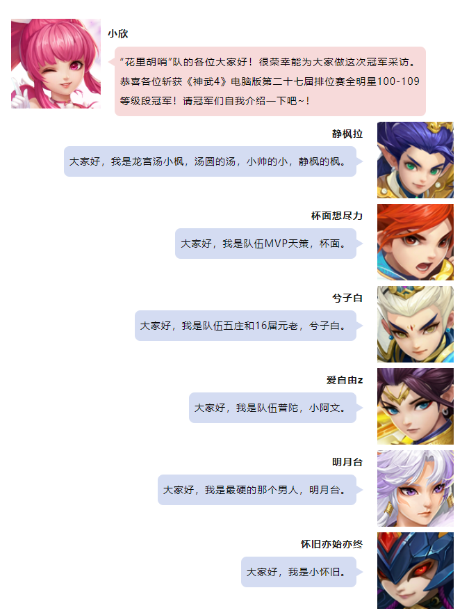 《神武4》本届全明星赛各个等级段的赛事,已经圆满落下帷幕,首先让我们恭喜“花里胡哨”队,一举摘下本届全明星赛100—109等级段的桂冠! 最后小欣还为大家带来了冠军战队的大合影,大家一起来看看吧~ 欢迎在下方留言讨论,了解更多幻唐志的相关内容请关注 叶子猪幻唐志专区。 [编辑:ssc]