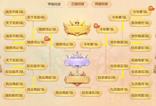 《幻唐志》第132届天选之战总决赛阵容,锦绣河山1队对战今年勇1队阵容。 天选之战甲组对战表 锦绣河山1队 对战 今年勇1队 双方阵容 天选之战乙组对战表 浪淘沙5队 对战 扬名立万9队 双方阵容 天选之战丙组对战表 少年游1队 对战 二〇二二6队 双方阵容 总决赛将在今晚20:15开始,大家记得前往各主城天选真君处为自己喜爱的队伍加油助威啦! 欢迎在下方留言讨论,了解更多幻唐志的相关内容请关注 叶子猪幻唐志专区。 [编辑:ssc]