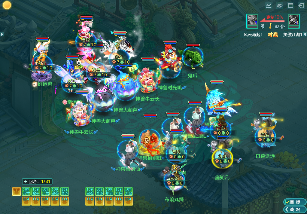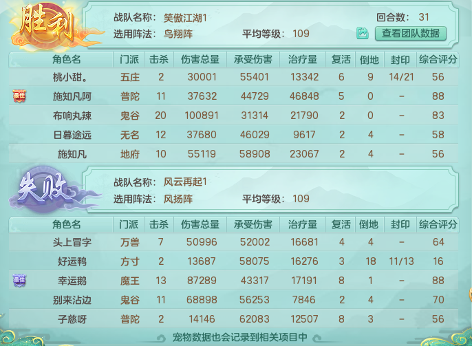 《幻唐志》第三十届排位赛全明星100-109分组决赛是笑傲江湖1队(观战方)鸟翔阵对战风云再起1队(对战方)风扬阵,观战方阵法大克,获得10%伤害加成。 观战方为携带地府的三辅助阵容,其中地府、普陀和无名均选择了可延长增益状态的永恒卡,无名拿到了物理一速优势;对战方则选择了万兽+鬼谷+魔王的三输出阵容,方寸和魔王分别拿到了全场一速和尾速优势。 战果速报 比赛开局,场上共计10只神兽首发相当壮观。对战方选择5破碎,首回合就给到压力集火地府;观战方3青霜+2破碎的组合,配合无名“锢神”成功限制2只破碎出手,地府因此得以存活。 第2回合,对战方利用场上剩余的2只破碎补足伤害将地府击倒,同时召唤翻江宠,为后续回合的集火做铺垫。观战方则抓住对手的出宠间隙进行反击,2只破碎配合鬼谷将对战方满血方寸击倒。 第3回合,对战方持续发力,普陀高拉方寸封印无名保己方不屈宠出手,破碎配合翻江宠和鬼谷“雷弩连袭”直接将五庄击倒,魔王“星火燎原”则下滑至无名身上,两段伤害将无名“神佑”打出,对战方藉此斩获前期优势。 第4-9回合,观战方利用千速、卡速宠复活倒地目标确保行动力,鬼谷和输出宠在持续守尸方寸的基础上,利用阵法带来的速度与伤害加成不断冲击对战方前排阵型,压缩对手行动力。反观对战方虽不断召出暴力不屈宠完成对倒地单位的守尸,使用“特技封印”和“绵里藏针”限制观战方的特技释放,但却没有对观战方的卡速宠做出应对,导致守尸的效果大打折扣。 第10回合后形势突变,对战方的人物状态和在场宠物数量已不支持同时守尸观战方3个人物单位,观战方开始反攻,五庄、地府和鬼谷终于得到机会通过逆转阴阳、撒毒和禁疗等手段压低对战方人物状态。 比赛进行到第20回合时,场上形式已完全逆转,观战方人物状态逐渐稳定,开始召唤输出宠反攻。而对战方因在前期召唤大量暴力不屈宠冲刺,宠物储量极度匮乏,面对观战方的进攻已举步维艰,方寸“涅槃重生”一换二后仍难掩颓势,遗憾离场。观战方在同时倒地3人的局面下完成逆转,用一场31回合的精彩战斗摘得桂冠! 赛后小结 回顾本场比赛,对战方在率先拿到优势后想同时完成对3个单位的守尸却适得其反,过度控制观战方特技、宠物不断被击飞导致行动力严重不足,大量召唤不屈宠使得宠物消耗极快,比赛步入后期时已失去竞争力。观战方则稳扎稳打,凭借三辅助阵容的消耗优势笑到了最后。 欢迎在下方留言讨论,了解更多幻唐志的相关内容请关注 叶子猪幻唐志专区。 [编辑:ssc]