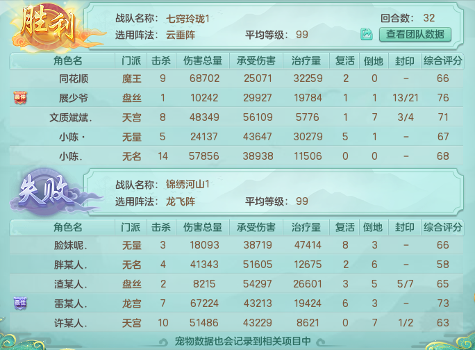 《幻唐志》第三十届排位赛全明星90-99分组决赛是七窍玲珑1队(观战方)云垂阵对战锦绣河山1队(对战方)龙飞阵,观战方阵法小克,获得5%伤害加成。 双方均选择了以天宫+无名为核心构筑的三输出阵容,观战方法系选择了魔王,并拿到了全场一速、尾速和物理一速等全部速度优势;对战方则是选择了龙宫,无名在没有拿到物理一速的情况下仍快过己方无量,使其极易遭到观战方物理针对。 战果速报 比赛开局,双方均选择了剑气首发,对战方阵中还掺杂了1只盾宠用于补给状态。首回合,观战方盘丝封中对方天宫,凭借更高的场伤拿到了清宠优势。 第3回合,对战方率先发难,天宫“无双连击”配合龙宫“烽火连城”集火观战方天宫,同时无名也可将天宫宠物击飞,不料观战方预判使用“绵里藏针”控制天宫愤怒限制其出手,己方天宫得以存活。 第4回合,观战方发起反击,盘丝配合无名双“锢神”直接将对战方无名封杀。对战方也不甘示弱,天宫配合龙宫集火成功补刀观战方天宫,平衡了局面。 第7回合,观战方无名精准预判,“归原”出手驱散了对战方天宫封印状态,而本用于解除封印状态的“灵心丸”反将天宫晕眩,成功干扰了对战方集火,保证己方魔王存活。 在接下来的8-13回合中,双方多次发起集火对攻,观战方天宫与对战方无名频频倒地。直到第14回合对战方倾全队之力击倒盘丝,第16回合击倒无量,确立了优势。 观战方的反击来势汹汹,第20回合,观战方无名本用来守尸天宫的“迟月破击”却因对战方无量的尾拉而下滑至龙宫身上,触发了“三世加持”的两段伤害直接将龙宫打残,配合魔法毒在回合末将其击倒,魔王“烽火连城”击飞龙宫宠物打开突破口,形势发生变化。 第23、24回合,观战方连续将对战方无名和天宫击倒,逼迫对战方不得不选择“涅槃重生”,天宫倒地前成功破掉观战方盘丝变身卡,帮助己方盘丝拿到一速,盘丝补酒涅槃完成一换二。但无名刚复活就被守尸击倒,对战方仅剩的6个药品也不足以将比赛拖延下去。最终,观战方用一场32回合的精彩战斗斩获冠军。 赛后小结 回顾本场比赛,观战方拿到全线速度优势可谓是重中之重,面对对战方凌厉的攻势,可以利用速度优势高效反击平衡局面,抓住无名速度劣势且快过无量这一痛点,以点破面扩大优势,最终收获比赛胜利。 欢迎在下方留言讨论,了解更多幻唐志的相关内容请关注 叶子猪幻唐志专区。 [编辑:ssc]