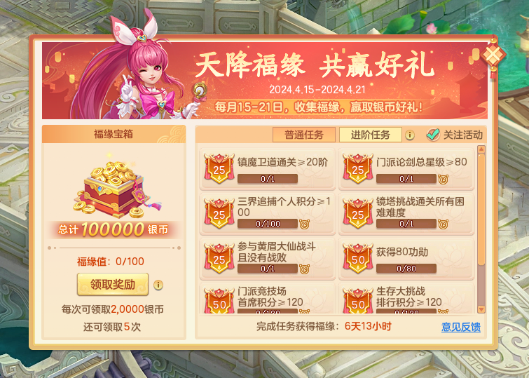 《幻唐志》欢迎收看本周的【更新爆料】,先给大家梳理一下本周更新维护的核心内容! 本周更新提纲 1. 天降福缘系列活动开启 2. 精灵系统调整 3. 新一轮半价转门派、重置属性预告 4. 其它内容调整 【天降福缘系列活动开启】 天降福缘系列活动将在本月15日0点开启,并对部分活动进行了调整: (1)福缘宝箱任务新增门派论剑、三界追捕、镜塔挑战的相关任务,降低了天地乐斗、生存大挑战任务要求; (2)三界奇缘调整为固定时间点有概率传闻部分奇缘事件所在地图,并提高了单次事件的可参与人数; (3)使用福缘恩赐道具奖励调整为获得随机道具奖励。 福源宝箱任务新增了各类活动,让大家在参与活动时也能积累进度,轻松领取更多银币。 【精灵系统调整】 降低了精灵第一技能和第二技能的解锁条件。 以后大家的精灵就容易达成解锁单法/群法的条件啦! 【半价转门派、重置属性预告】 本次半价优惠将会延长到4月26日;在4月26日维护后会开启新一轮的转门派半价、洗点半价优惠,时间截止至5月17日维护前。 4月26号维护后开启的新一轮半价优惠,大家同样可以获得2次转门派优惠以及宠物首次洗点优惠。 【其它内容调整】 官方助手支持更多功能 (1)支持了在奖励中心打开天降福缘活动; (2)支持了精灵系统; (3)移除了人物属性界面附魔按钮,可在主界面右上角“人物状态栏-战备检查”处进行一键附魔。 休闲钓鱼优化 (1)新增专用鱼饵,可提高特定鱼类的咬钩概率,可在渔夫处制作; (2)有钓鱼收获次数时进行钓鱼,有概率获得定制鱼饵的制作材料; (3)新增香粉,组队状态下可提高鱼类咬钩速度,可在渔夫处购买。 其它调整 (1)降低了星穹遗忘操作的穹玉消耗; (2)战盟论坛支持分享帖子内容到游戏中展示,各位少侠发现心怡的帖子后,可以点击分享-复制帖子链接,然后在游戏中分享给帮派成员和好友们。 *以上是慕子白带来的最新资讯* *最终效果可能会有所调整* 欢迎在下方留言讨论,了解更多幻唐志的相关内容请关注 叶子猪幻唐志专区。 [编辑:ssc]
