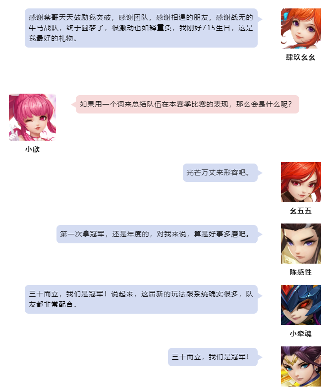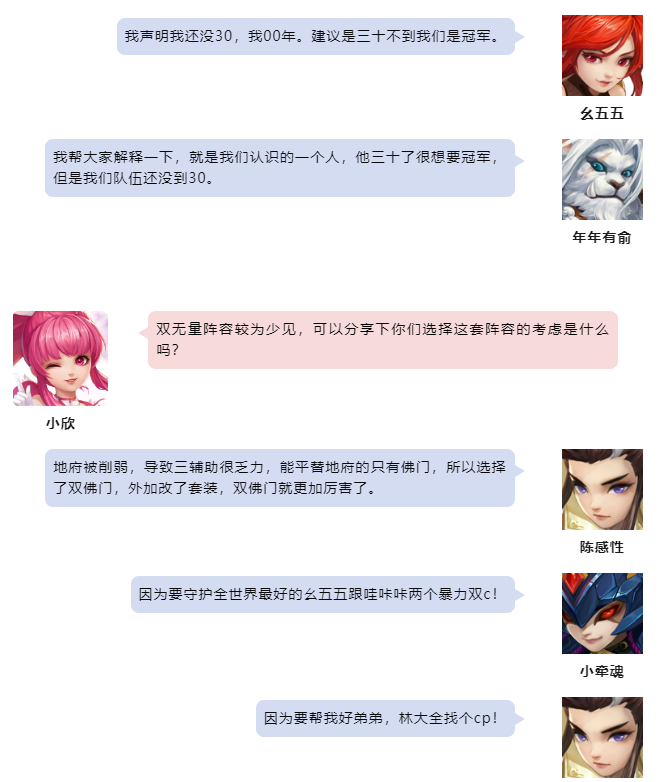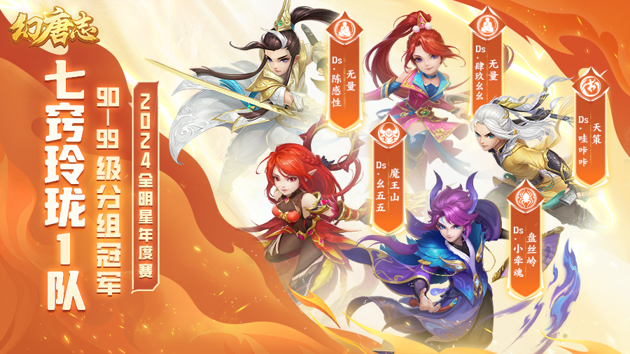 《幻唐志》2024全明星年度赛各个分组的赛事已经圆满落下帷幕,首先让我们恭喜“七窍玲珑1”队一举摘下本届全明星年度赛90-99级分组的桂冠! 本次采访的团队成员有: 盘丝-小牵魂 无量-陈感性 魔王-幺五五 天策-哇咔咔 无量-肆玖幺幺 除此之外还有: 年年有俞 王志坚 安静 惜缘 小林 世外90 阿豪 本届冠军采访到这里就结束了,祝愿大家在以后的赛事中都能取到好成绩! 欢迎在下方留言讨论,了解更多幻唐志的相关内容请关注 叶子猪幻唐志专区。 [编辑:ssc]