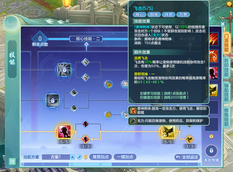 《幻唐志》赛季服各个门派都有着多样的流派,战神殿作为物理输出门派,前期即可在技能与符印的配合下,获得利用流血造成持续高伤、宠物协同作战,多段攻击爆发甚至追击新敌人的能力,一起看看如何构筑流派提升战力吧! 门派定位 战神殿的定位是物理输出,前期随着核心技能的解锁可以获得单体爆发的【横扫天下】,施放频率更高的【穿云斩】,以及群体伤害的【飞击】等技能,通过符印的搭配,使得战神殿不同的流派可以进行持续的流血增伤、单体的爆发同时追击新敌人,还有和宠物配合造成更多群体伤害的能力。 流血爆发-天穹血痕 该流派会强化技能【穿云斩】与【天罡剑气】,使其可以持续地为对手附加流血状态,流血状态层数越高,对手在回合末收到的结算伤害也会更高。连续的攻击还有概率直接结算一次流血伤害。【天罡剑气】增加多个目标流血状态,再使用高频率的【穿云斩】挨个点名,就是天穹血痕的常规玩法了。 少侠可在技能加点界面点击【推荐加点】即可学习天穹血痕技能分支,同时佩戴获得的流派符印。 佩戴【天穹血痕 · 一】会为少侠的流派技能附加额外流血概率与层数。佩戴【天穹血痕 · 二】可使得附加流血状态时还会造成额外伤害。佩戴【天穹血痕 · 二】将有概率在使用流派技能造成伤害时立即生效流血伤害。 连续追击-神策追影 该流派会强化技能【惊鸿斩】与【横扫天下】,使其可以更频繁地进行追加攻击,拥有更多的追加攻击次数。【横扫天下】本就有连击攻击的能力,配合该流派更能确保击倒对手。【惊鸿斩】还有概率会对其他目标多次追击,在对手多人状态不佳时,连续击倒多人。 少侠可在技能加点界面点击【推荐加点】即可学习神策追影技能分支,同时佩戴获得的流派符印。 佩戴【神策追影 · 二】会让少侠的追加伤害未击倒目标时有概率再追加普攻。佩戴【神策追影 · 三】可让少侠在追击时额外提升攻击力。佩戴【神策追影 · 四】还会让少侠在施放流派技能时,有概率获得鹰眼状态,提升命中率。 协同作战-兽群领袖 该流派会强化技能【撕咬】与【飞击】,使其可以在攻击时有概率让宠物使用随机技能协同攻击一次,宠物攻击后,人物还可额外追击。【撕咬】自带协同攻击天赋,还可连续攻击目标,配合该流派宠物出手概率更高,对单体会有更高的爆发。【飞击】连续攻击多个目标时,会更容易触发连携,配合宠物对多个目标造成多段伤害。 少侠可在技能加点界面点击【推荐加点】即可学习兽群领袖技能分支,同时佩戴获得的流派符印。 佩戴【兽群领袖· 一】会提高【撕咬】和【飞击】触发协同的概率。佩戴【兽群领袖· 二】、【兽群领袖 · 三】还会让少侠在宠物攻击与协同攻击时,有概率出手协同攻击,与宠物一起混合双打目标。 养成 属性加点战神殿推荐选用9力1敏或10力的加点方式,优先保证物理攻击力的同时,可以考虑增加一些速度,优先对手出手。 宝石推荐战神殿优先推荐太阳石与黑宝石保证攻击力与速度,其余部位选择月亮石与蓝水晶来增加物理与法术防御。少侠也不要忘了提升装备等级,在装备更替时宝石也会继承,打造属性也会随装备等级的提高而提高,少侠也不用担心。 欢迎在下方留言讨论,了解更多幻唐志的相关内容请关注 叶子猪幻唐志专区。 [编辑:ssc]