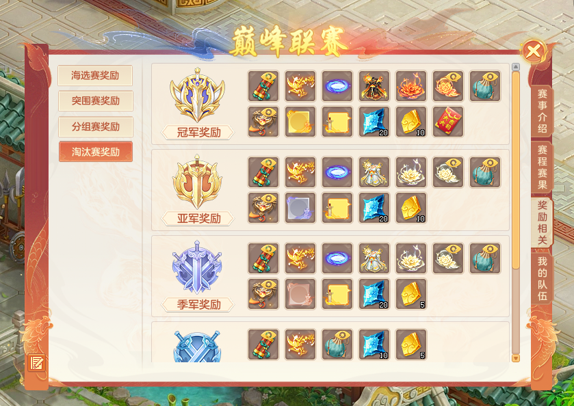 《幻唐志》全新赛事“巅峰联赛”将于4月29日火热开启,这场持续近一个月的赛事将为少侠们带来全新的竞技体验!同时巅峰联赛也为参与赛事的少侠准备了丰厚的奖励,典藏时装“少年游”头像框等丰富好礼等你来拿! 新顶级赛事 横跨五个等级段 本次巅峰联赛面向90级以上的少侠开放,横跨五个等级段。所有符合条件的少侠均可参与海选赛。无论你是初出茅庐的新手,还是久经沙场的老将,都能在本次赛事中找到属于自己的舞台。赛事将分为海选赛、突围赛、分组赛和淘汰赛四个精彩阶段,每周二晚进行两轮激烈对决。 海选赛即将开战 全民参与奖励丰厚 海选赛将于4月29日正式开启,所有90级以上的少侠均可参与。海选赛采用积分制匹配规则,胜利或者失败均可得到相应海选积分,海选赛获得一定积分还可获得山水玄机图、高级魔兽要诀、域外寒晶等丰厚奖励! 典藏时装新染色 赛事奖励曝光 为了让更多少侠享受到赛事乐趣和成就感,本次联赛设置了丰富的奖励机制。从海选赛到淘汰赛,每个阶段都有对应的专属奖励。不仅有元灵碎片和装备之灵等实用道具助力少侠快速提升战力,获得联赛冠军更可获取顶级大奖——典藏时装“少年游”,彰显少侠的实力与荣耀! 全新赛事“巅峰联赛”4月29日正式开启,本次巅峰联赛不仅是一场实力的较量,更是团队默契与策略的比拼。 欢迎在下方留言讨论,了解更多幻唐志的相关内容请关注 叶子猪幻唐志专区。 [编辑:ssc]