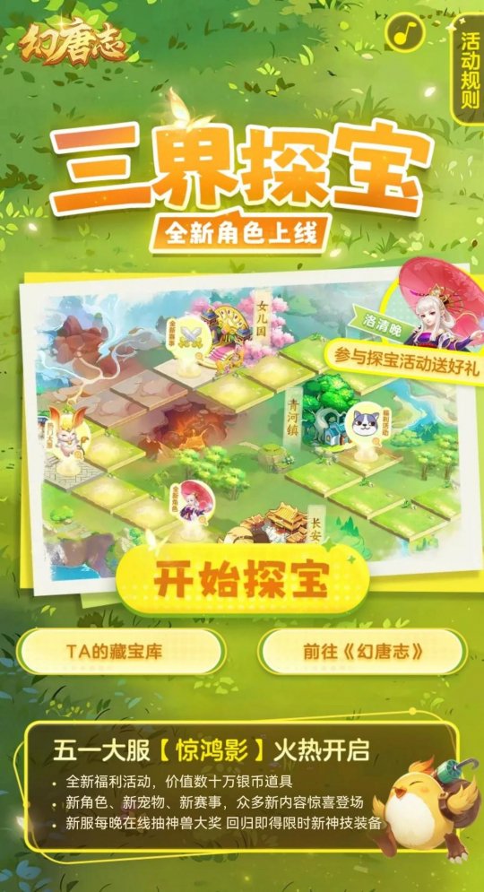 《幻唐志》本周维护更新内容,新角色与新宠物登场!五一系列活动开启,丰厚福利等你来领! 本周更新提纲 新角色与新宠物登场 巅峰联赛开启 业精于勤系列活动开启 升级庆典活动开启 五一大服“惊鸿影”上线 其它内容调整 【新角色与新宠物登场】 1全新角色“洛清晚” (1)新增女角色洛清晚、新武器伞剑; 在5月23日前直接更换造型到新角色或转门派时从付费造型转成新角色,下次转门派时可继续选择付费造型。 2全新宠物“镇岳龙蜥” 新增85级6技能宠物镇岳龙蜥,其拥有着比同级别6技能宠物更高的攻击、体力和速度资质。 3成就宠物“灵石护卫”全服上线 达到1380成就点可获得的成就宠物“灵石护卫”,本周维护后上线全服,其携带特殊单法技能“灵石地刺”,可对灵力低的目标造成更高伤害且自带15%法术暴击几率 慕子白业报轮回造成双倍伤害结果的几率由80%提升至85%,山绒在新服前期将拥有更强力的表现! 【巅峰联赛开启】 (1)服务器等级≥100级,4月29日?-?5月20日期间每周二晚将举办海选赛,同时天地乐斗玩法将临时关闭,连续成就“真·乐斗巅峰”连续进度不会被中断; (2)等级≥50级的少侠可在本服组满5人后直接参与海选; (3)参与海选赛、获得首胜和海选赛积分满足条件均可获得丰厚奖励,详情可前往游戏内长安城的监军使处查看。 【业精于勤系列活动开启】 1洛清晚赠礼 (1)等级≥65级的服务器,维护后至5月24日,洛清晚将给三界的少侠带来她的赠礼,参与完成她的清单任务积累点数,即可领取神兽之灵、域外寒晶等好礼,除此之外还有洛清晚精心打造的全新成就标签“骄傲狗”与“可爱兔”! (2)期间新升级到65级的服务器也将开启对应活动,活动持续30天。 2假日礼盒 维护后至5月11日前可购买各种礼盒,购买后于对应日期登录可领取奖励和额外聚宝券,使用后可快速完成部分日常活动并获得全部奖励!当日领取还可获得假日福袋! 3吉祥小铺 (1)维护后至5月8日前,小铺将限时上架洗宠强化符、酬勤礼包等优惠商品,还可免费领取貔貅古币及普通元灵; (2)2025年5月2日可解锁聚宝券等额外商品,助力假日减负畅玩。 4高级招财礼券折扣(1)2025年5月15日前,高级招财礼券折扣价68元(原价98元),限购1次; 通过折扣价购买高级招财礼券时还会额外获得3个清晚礼袋,打开后有机会获得随机神兽、时装等惊喜奖励。 5“三界探宝”网页活动 邀请好友一起进行寻宝藏网页活动,累计寻宝进度即可领取好礼! 6外观上新与返场 (1)上新宠物皮肤“蒲牢·白浪捧珠”、“灵石护卫·幽夜行客”。4月25日至4月27日,55级以上服务器开启限时加拍;(2)4月25日维护后至5月15日,双人坐骑万物生、单人坐骑月夜幽狐限时返场出售。 【升级庆典活动开启】 (1)服务器等级提升时,将开启升级庆典活动;可通过登录、活跃、玩法获得升级积分,在积分商城中购买养成道具; (2)其中,服务器等级开放至55/65级时,升级庆典活动将解锁封魔幻境玩法,可携带2门客3宠物助手挑战获得升级积分,具体详情可前往游戏中查看 【五一大服“惊鸿影”上线】 五一大服“惊鸿影”将于4月25日10点正式开启,并享受以下特色活动: (1)全新萌宠:每日签到可领取专属好礼,第二日登录还可领取携带全新群体特殊法术的强力萌宠忘忧仙兔,并有专属萌宠培养活动;(2)新服神兽礼:开服前15日每晚都有头像秀礼券、时装兑换券、自选双人坐骑、神兽青蛇等好礼相送; (3)全新首充:首充宠物重炮小熊焕新上线,日常活跃可持续培育。累积充值还能领取包含重炮小熊皮肤、内丹、魔兽卷轴等超值奖励;(4)探宝如意:新服专属全新活动“探宝如意”上线,新服前14天,每天12-23时的第15分钟,探宝如意将随机出现在长安城某处,跟随如意参与探宝将有机会获得丰富奖励;还有更多新服专属玩法期待少侠进入游戏体验! 【其它内容调整】 1聚宝盒折扣与新功能(1)4月25维护后至5月11日使用悬赏、部分聚宝盒功能,可享受7折优惠; (2)5月2日至5月11日使用回溯功能,可享受7折优惠; (3)聚宝盒挖宝图功能支持选择探宝司南。 2回归系统升级(1)回归鹿小淘任务减少,每日仅需完成一个任务即可领取鹿小淘准备的礼物; (2)4月25日维护后至5月11日,回归玩家每日签到即可领取带有全新神通神技的自选装备箱,最高可升级至满级宝石锻造等级红色品质,还有超级鉴定符、域外寒晶等免费奖励。 回归期间使用聚宝盒回溯享有5折优惠。 3其它调整(1)意外遗失的特殊魔兽要诀现可以通过长安城仓库管理员处找回贵重物品进行找回; 维护后至5月9日,新服及老服回归角色将开放忘川来客活动,每天登录即可获得时光笔,体验新角色剧情,并获得剧情任务奖励;(3)修炼珠支持了在物品背包中批量使用。 *以上是慕子白带来的最新资讯* *最终效果可能会有所调整* 欢迎在下方留言讨论,了解更多幻唐志的相关内容请关注 叶子猪幻唐志专区。 [编辑:ssc]