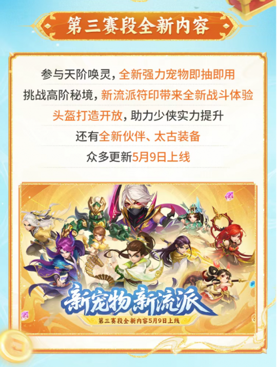《幻唐志》赛季服现在回归即可领取专属好礼,强力装备符印和满技能宠物等你来拿,五一系列活动火热开启中收集物资、日常活跃得好礼还能参与神兽抽奖等活动。 第三赛段即将开启 《幻唐志》赛季服“开天辟地”第三赛段将于5月9日上线,全新流派符印、太古装备带来战斗新格局;全新宠物、伙伴也将一同登场。想了解有关新宠物的更多信息,可以点击此处查看! 《幻唐志》赛季服“开天辟地”第三赛段5月9日上线参与活动,提前攒资源备战全新内容,诚邀各位少侠上线体验副本爆装,技能树以及符印系统等诸多特色玩法。 欢迎在下方留言讨论,了解更多幻唐志的相关内容请关注 叶子猪幻唐志专区。 [编辑:ssc]