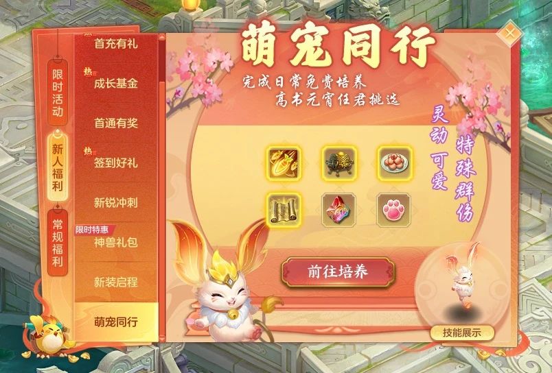 核心内容一览 同享五一服福利 1.萌宠同行 2.在线抽神兽 3.首充新宠 4.如意探宝 全服同享 1.新角色洛清晚 2.招财礼券折扣 3.三界探宝 萌宠同行 现在入驻即可领取大服专属宠忘忧仙兔,携带特殊技能【萝卜连击】;少侠通过成长加速活动加快升级速度,可以更快追赶落后的培养积分,培养出你的专属萌宠! 新服神兽礼 新服开放前15天,达到目标等级即可参与每晚的在线抽奖,时装、双人坐骑、珍兽、神兽等你来抽! 首充有礼 首充即得群攻吸血萌宠-重炮小熊以及配套养成道具。累充一定金额还可获得让萌宠多一个技能的重炮小熊内丹,以及专属皮肤海滨风情! 还有全服共享的新玩法与福利 ↓↓↓↓↓ 新角色洛清晚 全新免费角色洛清晚现已登场!洛清晚拥有专属武器伞剑,可拜入灵月山、魔王山、万兽岭、盘丝岭、无名谷、幽冥地府六大门派,入驻系列服即可选择与洛清晚一起闯荡三界! 招财礼券限时折扣 活动期间可优惠30元购买高级招财礼券,并立刻获得3个清晚礼袋,使用后有机会获得随机神兽、时装、高级魔兽要诀等惊喜奖励。 三界探宝网页活动 活动期间,每位少侠均可在限时活动界面处发起活动,邀请好友一起寻宝藏。累计寻宝数量达到2、3、5、6次时,均可在游戏中领取奖励。 欢迎在下方留言讨论,了解更多幻唐志的相关内容请关注 叶子猪幻唐志专区。 [编辑:ssc]