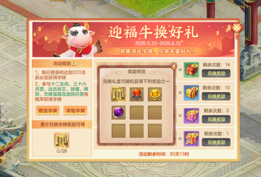 《幻唐志》新服“牛气冲天”将于5月23日正式上线!爱牛节先行活动“斩妖护行”目前火热进行中,击败妖魔领取丰厚奖励! 爱牛节系列福利活动来袭 多益网络526爱牛节即将开启,为迎接多益吉祥物牛益福到来,现在参与爱牛节先行活动“斩妖护行”不仅可以为牛益福到来扫除阻碍,还能赢取虹彩、神兽之灵等丰厚好礼。 本周更新后,福牛集字、迎福赠礼等爱牛节系列活动开启。少侠通过日常活跃以及参与生肖天罡、降妖除魔等玩法可获得鸿运字牌,集齐对应字牌即可兑换礼盒,有概率获得神兽之灵、高级魔兽要诀等精美好礼! 活动期间,少侠每日活跃还能获得的福运券,每晚牛益福降临长安城时,少侠可使用福运券在牛益福处兑换神秘奖励,有概率获得三级护符重置丹、神兽之灵等惊喜大奖! 新服多重专属福利 少侠入驻新服“牛气冲天”即可体验到全新的30级新手副本、在线抽神兽、神兵锻造以及礼券加码等新服专属福利活动,不仅能享受月卡立减30优惠、打造50级装备神技神通的概率大幅提升等福利,每晚参与在线抽奖还有机会获得神兽青蛇、双人坐骑等惊喜大奖,助力各位少侠畅游三界! 除此之外,少侠次日签到还能领取拥有特殊技能的强力萌宠青瓷姬,活跃即可对其进行多次免费进阶培养,解锁第五个技能时还能自选高级魔兽要诀,不会顶掉已有技能。 欢迎在下方留言讨论,了解更多幻唐志的相关内容请关注 叶子猪幻唐志专区。 [编辑:ssc]