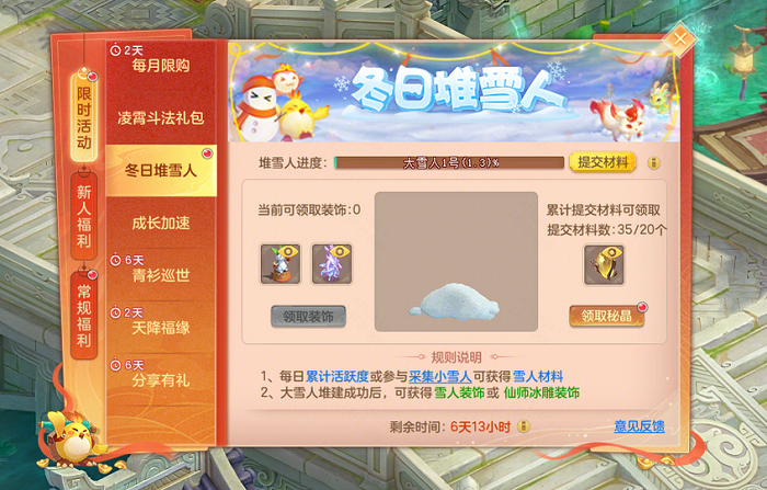 本周更新提纲 特殊技能“马踏祥云”抢先体验 冬日系列活动开启 第159届天选之战开战 大闹天宫奖励加 好友推荐与回归优化 新内容上线预告 【特殊技能“马踏祥云”抢先体验】 维护后至12月25日期间,完成十二生肖、三十六天罡、镇魔卫道可获得龙马宝石,宠物使用后可临时获得技能“马踏祥云”。 神兽龙马特殊技能抢先体验,“马踏祥云”会和少侠的宠物产生什么化学反应呢?快来试试吧~ 【冬日系列活动开启】 冬日堆雪人 (1)维护后至12月25日,少侠们可通过每日活跃或野外采集小雪人获得雪人材料,全服共同堆雪人; (2)提交雪人材料有机会获得道具奖励,成功堆建大雪人后可领取庭院装饰奖励,提交一定数量可领取龙马秘晶。 12月26日维护后,可使用龙马秘晶参与活动抽取神兽龙马、高级魔兽要诀等珍稀大奖! 冬至礼包 每周商店将限时出售冬至礼包,包含高级魔兽要诀、洗宠强化符和祝福汤圆。 冬至水饺 12月19日与21日,参与帮派篝火时可前往沈姑娘处领取一份水饺,食用后可获得道具奖励,享受冬至的温馨时光。 小伙伴 维护后至12月25日,小虎将在青河镇出现,通过他的挑战将获得可发现特殊小伙伴的线索。 12月21日,少侠们前往礼物仙子处领取冬至礼物时可获得额外奖励~ 【第159届天选之战开战】 (1)第159届天选之战将于12月19日开启,其中预选赛阶段将取消净胜回合数以及战斗评分对排名的影响; (2)助手端登录的少侠也可前往天选真君处或打开助手观战大厅观看比赛。 净胜回合数与战斗评分将不再影响排名,选手们可以组建自己更擅长的阵容参赛~ 【大闹天宫奖励加码】 (1)奖励加码: ①新增修炼宝箱,活动中人物修炼或宠物修炼达到10级可开启; ②进攻箭塔、和玩家对战有机会额外获得奋战礼盒; (2)提高了进攻箭塔与基地的帮贡奖励,积极推进的少侠也能拿满帮贡宝箱; (3)调整了发起强袭的人数限制。 大闹天宫玩法奖励加码,下周一一起重温这场旷世之战吧! 【好友推荐与回归优化】 (1)维护后至2026年1月25日,好友推荐的奖励限时加码; (2)邀请人或招募人可限时获得贡献积分,用于兑换寻宝币、洗宠强化符等道具,其中寻宝币可在12月26日维护后用于琳琅秘宝的抽奖; (3)回归或新人玩家累计充值一定额度,可领取寻宝币、神兽之灵等道具; (4)擎天将获得赤诚、永生特性; (5)新增邀请回归功能,可在创建队伍后邀请同服近似等级的回归玩家组队。 【新内容上线预告】 免费角色温知尘 全新角色温知尘将于12月26日上线,可拜入凌霄天宫、东海龙宫、南海普陀、镇元五庄和无名谷。现在上线参与青衫现世活动体验新角色剧情,还可领取转造型折扣券。 神兽龙马 全新神兽龙马将于12月26日上线,携带特殊技能【马踏祥云】: ①单体法术攻击力大幅增加,有40%几率无视目标复活、保命、不屈类效果,攻击后目标气血低于10%,最高25%几率直接击倒目标(受魔力点数影响); ②群体法术伤害大幅增加; ③出手前受到的伤害减少20%,非玩家对战中效果翻倍;与磐石状态共存时磐石状态无效。 数字大服“二〇二六”已开启预创建 数字大服“二〇二六”将于12月26日10点开启,现已开启角色预创建,享有以下福利: (1)预创建时支持提前选择新主角“温知尘”; (2)全新萌宠“团团”陪伴少侠同游三界,萌宠可持续进修至神兽资质与成长,其专属技能还可根据佩戴不同表情产生不同增益效果; (3)新服将开启龙马结缘、新服神兽礼等多项活动助力少侠抽取新神兽; (4)官网预约同步开启,预约新服领好礼,邀请好友还可额外获得预约积分兑换稀有奖励。 神兽内丹碎片福利预告 (1)12月26日维护后,挑战积分商城每月限量兑换神兽内丹碎片; (2)12月26日开启龙马赠礼,累计活跃即可获得神兽内丹碎片; (3)英豪令下赛季开始,养成和育宠奖励的85级自选礼盒均加入神兽内丹碎片选择; (4)自1月15日开始,天降福缘每月限购商城中增加2个神兽内丹碎片。 积分商店调整预告 12月26日维护后,比武、挑战积分商店: (1)神兽之灵和洗髓丹调整为专用并降低兑换价格; (2)降低高级魔兽要诀和神功要诀的兑换价格。 启明之战调整 (1)新一届启明之战将在2026年1月2日维护后开启报名; (2)启明之战将增加更多等级分组: ①天命组:120-130级服务器; ②地灵组:100-115级服务器; ③人杰组:85-95级服务器。 (3)各分组前3名的队伍,将会获得专属染色云宫仙音时装、特殊称谓、头衔、足迹、队标奖励,冠军可额外获得启明之戒奖励,第4-16名的队伍,将会获得特殊称谓和头衔。 同分组的参赛队伍将同台竞技争夺桂冠,且根据组内服务器等级差给予对应能力修正~ 天选之战争霸赛 第160届天选之战将临时调整为天选之战争霸赛,在争霸赛中: (1)服务器等级≥135级的服务器可报名,服务器等级≤130级的服务器,将会举办新的启明之战赛事; (2)参赛选手将进入同一个分组战斗,提高每轮预选赛积分奖励,并增加替补成员、决赛禁选门派机制。 更多天选之战争霸赛的赛制规则、奖励提升内容,敬请期待后续爆料~ *以上是慕子白带来的最新资讯* *最终效果可能会有所调整* 欢迎在下方留言讨论,了解更多幻唐志的相关内容请关注 叶子猪幻唐志专区。 [编辑:ssc]