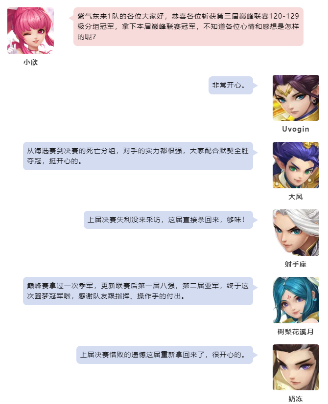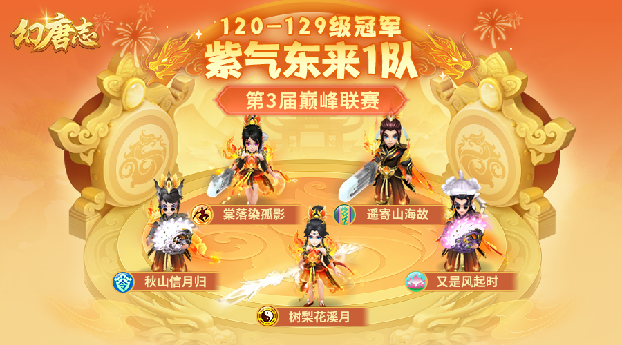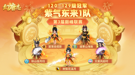 幻唐志第3届巅峰联赛各个分组的赛事已经圆满落下帷幕,首先让我们恭喜“紫气东来1”队一举摘下本届120-129级分组的桂冠! 120-129级分组 紫气东来1队 本次采访的团队成员有: 镇元五庄-树梨花溪月 南海普陀-大风 幽冥地府-秋山信月归 天策-阿靡 七星方寸-遥寄山海故 除此之外还有: 奶冻 射手座 Uvogin 萌爷 本届冠军采访到这里就结束了,祝愿大家在以后的赛事中都能取到好成绩! 欢迎在下方留言讨论,了解更多幻唐志的相关内容请关注 叶子猪幻唐志专区。 [编辑:ssc]