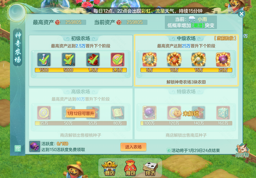 幻唐志1月8日维护更新:桃源仙踪如期而至,幸运星期三宝藏挖不停,神奇农场分享收获喜悦。免费抽新神兽龙马,精彩内容等你体验! 幸运星期三挖宝藏 桃源仙踪活动周三如期而至,少侠今晚19:00可前往桃源深处探寻宝藏!选择失修宝藏铲的少侠在幸运星期三的加持下能挖掘多少次呢?今晚拭目以待! 参与活动有机会获得三级护符重置丹、神兽之灵、元灵碎片等丰富奖励。快来开启你的幸运星期三之旅吧! 今晚21:00镜塔挑战开启!少侠可组队前往挑战,在镜中塔迷宫对战守护者,通关困难难度还可领取额外奖励,有机会获得源生之灵、神兽之灵等珍稀奖励! 神奇农场分享收获喜悦 全新休闲玩法“神奇农场”现已解锁中级农场,与三界少侠共同分享多词条、高倍率的作物,享受丰收的喜悦!提高农场等级可领取神兽之灵、寻宝币、龙马表情盲盒等奖励! 神兽福利等你来领 龙马祈福活动火热进行中,少侠可通过元日驱邪、仙师小铺活动获取龙马秘晶,抽取新神兽龙马、双人坐骑、时装兑换券等珍稀好礼! 龙马赠礼第二期奖励开放领取中,日常活跃领神兽之灵、固神丹等好礼。1月9日开放第三期奖励,除神兽之灵、龙马秘晶外,还有神兽内丹碎片供少侠选择! 仙师小铺活动进行中,少侠可前往与温知尘议价,购买折扣的神兽之灵、龙马秘晶、高级魔兽要诀等好礼! 欢迎在下方留言讨论,了解更多幻唐志的相关内容请关注 叶子猪幻唐志专区。 [编辑:ssc]