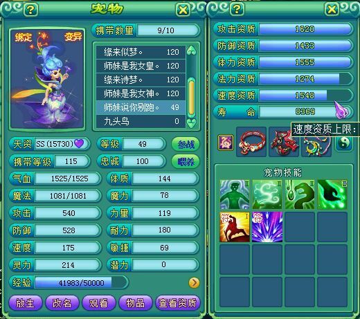 相关资讯: 直播打造桂花,好宝宝,通灵造! 今年的通灵符就给它了,给我好好的来个变异五技能,那么全部就值得了! 老天啊,这不对头啊,洗了我400多丹了,怎么还是这个样子,没有5技能就算了,竟然还是这样的资质和成长,让我怎么拿得出手啊。 就这样了吧,感觉能看了,最重要得原因是,我没丹了!不的不算了! 10本书,猜猜能否上4技能?我相信我的人品,我更相信我的脸。 相关资讯: 我去,这打脸打得啪啪响啊,一直到第31本书才4技能啊。 炼化丹吃起来,先升技能和喂满资质先。 坑了,差一点不够买饰物,挖几张宝图先。
