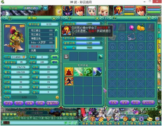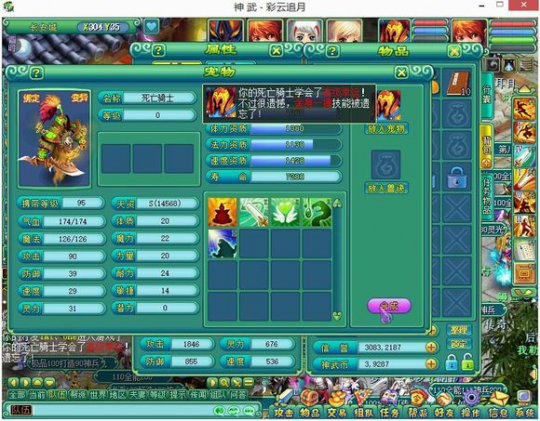 相关资讯: 死骑打书成品记,从胚子到成品,一路心酸,同时也是刺激! 所谓三军未动粮草先行,洗个好护符摆在第一位,洗了5次,总算能见人了,没有辜负10多W神武币。 资质总的来说还是不错的,就是别看成长,真的,别看,看了伤心,一本高级报复掉鬼魂术,赚大发了,稳稳的拉了一大波仇恨。 然而高级幸运掉了舍身一搏,这也断了做舍身宠的念头,反正我也做好了做剑气宠的准备了。 到第三本书的时候出现了小小的失误,冥思没有掉,高援助掉了高级毒,还没完成垫书的步骤。 高毒重出江湖!冥思哪里逃?!5本高书全部垫好了。 神护符走起!立即高大上,不要羡慕,就是这么6666