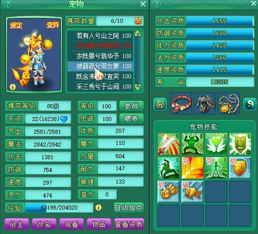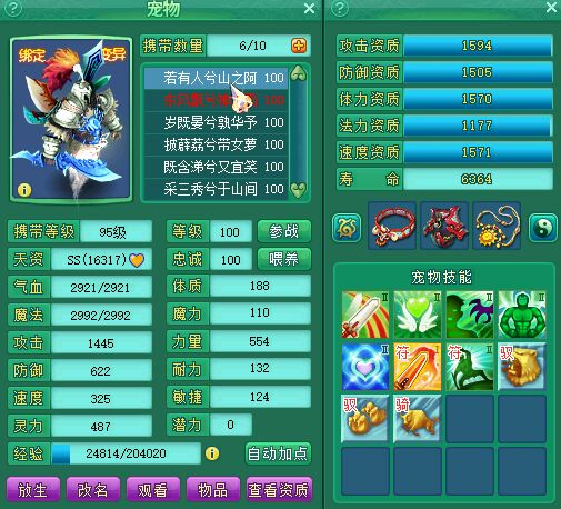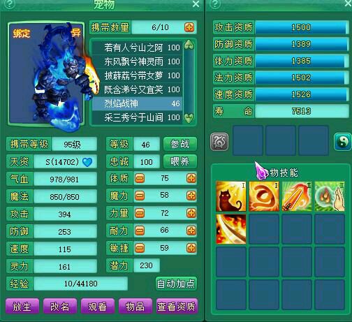 相关资讯: 95狮驼一枚,卡95一年多了,宝宝基本都齐了,就差只隐攻,今天月礼包给的还童丹加上洗宠祝福正好洗了一发,没想到真的出了……然后,听我慢慢到来T_T 这是我第四只五技能宝宝,虽然都不是红心❤,但每次看到五技能都不忍心再洗了,这次也不例外; 吃满了资质,又把攻击吃满了元宵; 然后我就试着开始打书,毕竟第一次打隐攻,对隐攻也不了解,就那么胡乱打了,如下图 没想到两个小技能直接掉了 势不可挡的准备开始打第三本,高比高隐高感高审批烈焰斩,是不是很完美? 但是我的好友跟我说漏了夜战。。我也发现这是个问题 对了。。。我还没发洗hf,用了那个高连精准之后...脑子一热就开始打夜战; 因为好友都说现在幸运烂大街,高必不合适,于是...... 最后.....呵呵,高比高感高隐身高审判高夜战。你们说要不要找回烈焰斩??? 强行秀一波五技能BB。