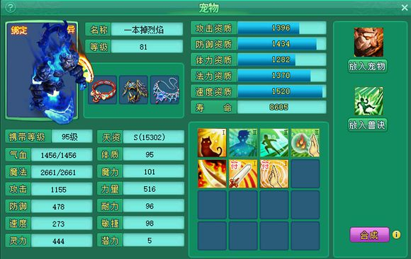 相关资讯: 这只烈焰花了大概1200丹才出,资质感人,但是因为5技能就忍了。 先打一本高感知,real庆幸的是高必没有掉,但是总感觉少了什么?? 本来想高必、高法爆、高感知、高隐身、烈焰斩,带高连护符,做个有个性BB的。 目测掉什么??大声的说出来!! 什么?掉高必??潜能找回烈焰掉高必,可以,强势! 直接怼,高隐身,谁怕谁? 高感知掉了,此刻心有点累。 换个神级的护肤,继续怼; 掉灵敏咯!!! 这是要一本道的节奏啊。 现在打书的节奏就是怎么便宜怎么来。先上一本高感知。