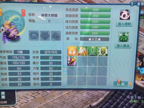 上拍卖中心拍到了一个源生之灵神兽,选了神兽大熊猫。基础技能是高连高神佑高防御幸运,看上去每个技能都能用的样子。 大熊猫毕竟国宝,本体的黑白是不变的,只能染个腰带手套鞋子竹子什么的装饰装饰,这个染色就算是染好了。 先打了一本高审判,紧接着是一本高强壮低调高防御。 最后高勇敢收尾顶掉了幸运,打完收工。 高连大熊猫成品图奉上,打书毫无波澜。 [编辑:Hi、何同學]