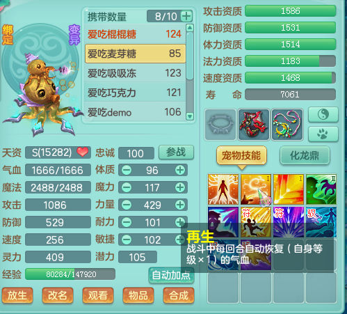 这只五技能的章鱼,是做单攻好还是剑气好,要怎么打书才能体现出它作为一只变异五技能的优越性? 一般情况下,五技能剑气打书基本为:高必、高勇、高强壮、高神/高保、高审判/高强力。 翻了翻仓库,找了几个护肤: 在不换护符的情况下,高必杀,高强壮,高神佑,高勇敢。最后一本高再生、高防御、高幸运随便选择。 天天发这些多技能的BB,小编的内心也是很奔溃的,但是没办法,发那些4技能的蓝心,你们也不看。 六技能的灵性,据说是一不小心就洗出了个六技能,看这资质,羡慕了。 目前的话没有隐攻宠,因此这只六技能的灵犀想要打造成隐攻宠~这个护符是随便带着升级的。 一不小心洗出了个六技能,一不小心,这只六技能的隐攻宠就一本道打书成品了。 技能搭配为:高连、高隐、高感、高夜、高幸运、高审判、护符气势+高偷。 [编辑:Hi、何同學]