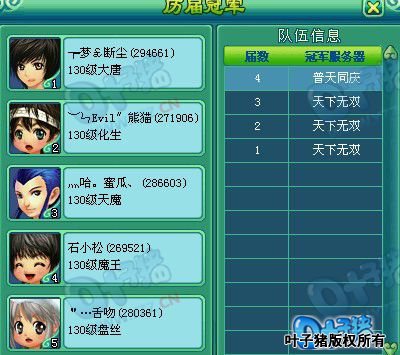 相关资讯: 大家好~神武之战的硝烟已经过去了,恭喜普天同庆队伍拿到了冠军,撒花撒花~ 这次也是最大冷门的一次的服战,而作为最后的冠军得主,普天同庆队伍也欣然接受了小布的采访要求,因为队里的魔王有事出差了,所以我们欢迎普天同庆D队的四位成员做客我们的叶子猪论坛。 小布:你好梦断尘,我是叶子猪的记者小布,今天非常感谢你们接受我们的采访。 梦断尘:不客气啊,哈哈! 小布:非常恭喜你们这次可以拿到神武之战的冠军, 打破了天下区一贯的垄断局面,你们是一直以来的固定队伍吗?包括帮战都在一起的吗? 梦断尘:队伍在一起固定一年多了,什么都在一起刷的,除了平时偶尔的36 SX之类。 小布:这次神武之战的参赛,有没有想过队伍会拿到冠军这个名次,因为毕竟这次的导演队伍换了阵容,在开赛前,会有担心吗? 梦断尘:没想到,但四强是想到了,上次输完回去我们宝宝都做了大改革,这届也不甘心拿第四了,看完报名队伍忌讳的还是上林队伍,毕竟我们输过一次,自导队伍反倒没再担心,天宫输出实在有限,双封对双封,很难在时间内结束的。 小布:但是你们这次很巧的分组避开了上林,而上林也意外的翻船了。 你们遇上了天下的D队 也就是雨凡队伍,这场比赛也是很有争议的一场。 关于速度问题,在贴吧里,想必你们也看到了。 梦断尘:我发帖子回复了而且被删了,时下雨凡的言论让很多不知所以然的小号认为我们是受照顾靠一速赢了这场比赛,但我并不这么认为,8进4打完我们就坚决的要开风。 首先双方队伍都是双封,他们一定会为了和我们抢速度开鸟,毕竟大家除了想要一速还牵扯PS和ES之间速度的互拼,他们有TG 我们拼不到一速索性开风大克,靠阵技偷袭。我们上来点杀了天魔,我觉得他们是输给自己了,他们很自信的一直人拉而不出千敏辅助,让我们魔王一直守尸。 小布:其实,这些都是因为这个游戏的PK机制不完善所造成,乱敏这个问题我想你们在PK时应该也不是一次遇到了, 针对这个缺陷,你们有什么想说的吗? 梦断尘:几率性这种东西不也是这游戏的一个可玩点么,至少我这么觉得吧,打装备宝宝都有几率,乱敏也一样呗,我们上届半决赛开鸟都快不过自导的虎阵天魔没什么,不过半决赛这场确实没想到天魔能拿到一速,因为我们的天魔都是被黑的,哈哈哈!
