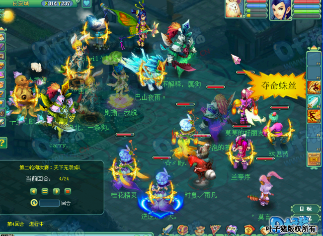 比赛一开始,虽然梦断尘队伍抢到一二速。但是雨凡队利用自己的阵法优势上来便点杀掉对面的小香猪。上来便占据了很大的优势。随即,雨凡队开始无限的控尸,在控尸的情况下开始清理对面的BB,对面封印率的降低,导致了雨凡队伍的输出不断扩大,而小香猪的不断倒下,梦断尘队伍似乎找不到什么解决的办法。而这个时候,沐思芮使用了第三届阔别的一个技能,夺命蛛丝。成功的封印住刚刚拉起来的小香猪。 似乎是无意,雨凡的两下破血狂攻打到了梦断尘的身上,莫言的一记天崩就带走了梦断尘。小香猪和梦断尘的相继倒下。加大了雨凡队的优势。 |