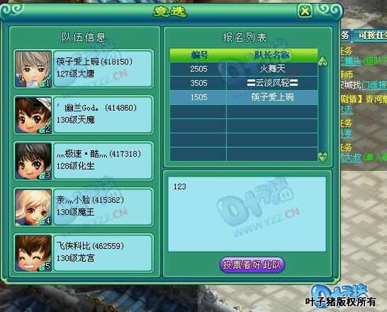江山如画幽兰队伍休息多联后复出 不知是否有惊喜 在第二联神武之战的时候,他们一战成名,尽管决赛不敌若即若离队伍,但他们在4进2成功击败导演队伍,让当时所有玩家都记住了他们。经过了多个月的休息,团队也发生一些变故,天宫的离开,新魔王的加盟,他们已经从双物理队伍转变成双法队伍,本联阵容是天魔、化生、大唐、魔王、龙宫,希望他们能给我们带来不一样的比赛吧。 当然,最大的亮点还是黑马,黑马一出谁与争锋。上一联,碧雪情天的90何队伍让人眼前一亮,不知道本联是否还有黑马诞生? [编辑:心情]
