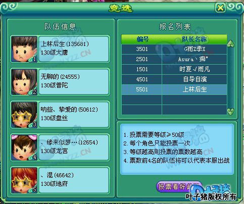 天下无双上林队伍再出山 成员发生较大改变 经过了多个月的沉淀与整顿,上林队伍本月再次报名神武之战,从目前的支持率来看,当选几率相当大,报名成员进行了较大的改变,替换了2位曾经的队员,无聊的替换了张十三,盘丝替换了若即若离,这样的队伍配置在他们第二联的时候曾经运用过,只是人员发生了变化,带了如今神武之战比较吃香的封系盘丝之后,不知道幸运女神是否会眷顾他们,期待他们周末精彩的表现。