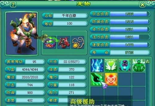 【纯控制低速恐怖血宠】 【技能搭配】 高防御 or高强壮 高幸运 高援助 高恐怖 大法或者剑气