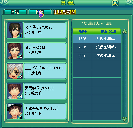 相关资讯: 第二十八届神武之战周末开启,下面收集了各个服务器的报名图,欢迎各位查询。 温馨提示:如果遇到有空链接的表示此服务器没有玩家报名神武之战。