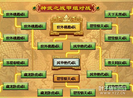 相关资讯: 进入8强的队伍大部分的具备了相当实力,下面让我们来回顾一下激烈的8强比赛吧。 8强录像推荐:8强:碧雪情天A队VS天下无双A队.swr 8强录像推荐:8强:藏龙卧虎A队VS苏提春晓A队.swr 8强录像推荐:8强:风华绝对A队VS普天同庆A队.swr 8强录像推荐:8强:世外桃源A队VS世外桃源B队.swr