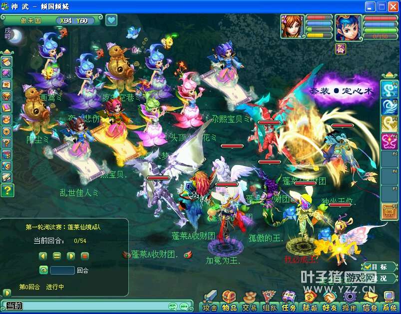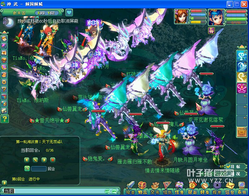 相关资讯: 天下无双A队VS碧雪情天A队 天下A队:ST LG WZ TM PT(虎翼阵) 碧雪A队:DT LG FC PS PT(龙飞阵) 高手过招,10仙兽激情对决,双方阵容都是2输出2封1辅助,在阵法上碧雪A队占得优势,龙飞阵大大克制了天下A队的虎翼阵,比赛开始碧雪A队率先击倒对方的仙兽,而且封系非常给力,封印了天下A队的天魔和狮驼,而天下A队则是拉出了月光,一下审判带来奇效,利用减防效果开始清除对方的仙兽,而后将目标集中在碧血A队的盘丝身上,破血出击配合剑气成功将其击倒。而碧血A队则是用起了绝幻魔音压制对手的特技施放,双方的战术各有亮点,经历了36回合的激烈大战,最终天下A队击败了碧血A队成功进军了8强。 蓬莱仙境A队VS四海升平A队 蓬莱A队:ST LG MW FC PT(龙飞阵) 四海A队:DT MW FC DF PT(虎翼阵) 蓬莱A队阵容3输出1封1辅助,而四海A队的则是2输出1封2辅助,阵法上蓬莱A队占得优势,龙飞阵大克四海A队的虎翼阵,而且蓬莱A队首发有2只仙兽,不错不幸,四海A队的普陀刚喝了酒就中了恐怖状态。蓬莱A队的狮驼是在肉,大唐3刀扫不死,剑气只能打出180血,这就是血耐狮驼的恐怖之处,即使倒地拉起后又是疯狂的输出,生存了大大的加强,而四海A队的大唐则是不断被守尸,被剑气宝宝不断压制,逼的四海A队只能用起罗汉,再依靠地府不断四海拉回血线,历经54回合,蓬莱A队将对手全部歼灭,成功进军八强。