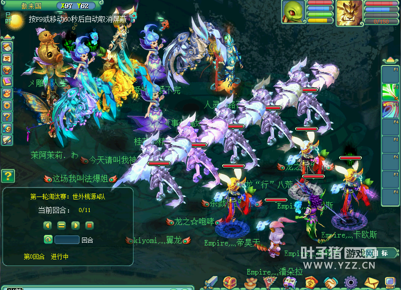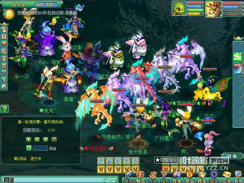 相关资讯: 世外桃源A队 VS 二〇一二A队 世外桃源A队:TM WZ LG PT ST 二〇一二A队:WZ LG HS FC ST 一速是观战方的TM,可惜没有封中。反被对战方FC封了WZ。第二回合,对战方继续封印观战方的队员,致使观战方PT陷入昏睡状态,ST也被封死。观战方岂会就此束手就擒,WZ一招晶清解除了危机。观战方马上锁死对战方WZ,然后一招笑里藏刀对对战方化生。战争进入到第七回合,随着对战方ST倒地,对战方那个的攻势被削弱,双方都拉出隐攻宠保持生命力。最后,观战方一招寒风袭营令对战方三名队员被封死,再乘机清宠逐个击破。最后,在对战方FC和WZ相继倒地的情况下,观战方以十一回合轻松晋级。 普天同庆A队 VS 藏龙卧虎A队 普天同庆A队:TM MW PT LG ST 藏龙卧虎A队:HS MW FC LG DT 观战方一上场,即以五仙兽示人,气势相当强大。一速是观战方TM,一招乱心术封住了对战方FC。接下来,观战方以一招万兽统领直接攻击对战方FC,配合四只仙兽轮流使用直接攻击,看来观战方是想从FC处找到突破口逐个击破。最终对战方FC倒在MW的一个三味真火中。趁着对战方在拉FC之际,观战方ST一招鹰击清宠并阻止FC回血。观战方一招双龙戏珠令对战方FC倒地,配合TM的燕返,对战方场上两名大将被封,FC倒地,对战方开始处于劣势。观战方在回复血线后大举进攻,最终以十二回合,普天同庆A队成功晋级下一场比赛。