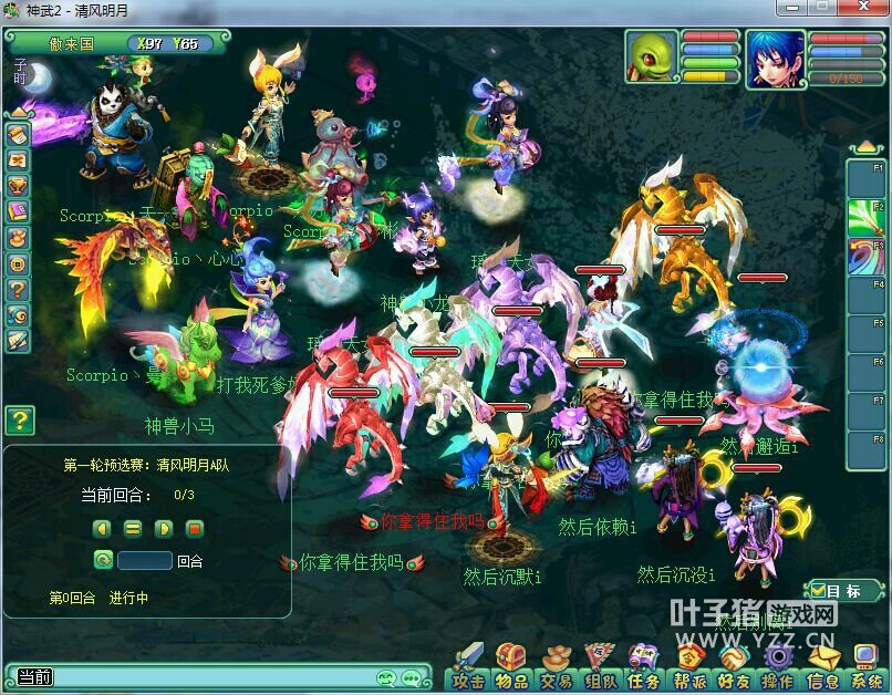 相关资讯: 清风明月A队VS盖世英雄C队 清风A队:TM PT PS LG ST (龙飞阵) 盖世C队:LG PT ST FC TG (虎翼阵) 上届服战清风A队时运不济在八强对决淘汰赛就与强敌沉鱼A队遇上,从而绝缘三强争夺战。那么就看此次清风A队的命运如何了。预选赛开启,龙飞阵克制虎翼阵,清风A队对战新区盖世C队,等级压制140对125,论实战经验,清风A队完胜,四仙兽首发,硬件条件也是没法比,这一看就是一场毫无悬念的对决。因此清风A队仅仅用了三回合就结束了本次战斗。进入预选赛第二轮。 画龙点睛A队VS彩云追月B队 画龙A队:PT LG ST MW FC (风扬阵) 彩云B队:WZ FC ST LG LG (虎翼阵) 虎翼阵克制风扬阵,在等级上对战方被观战方压制,看似互相平衡的点却被观战方五仙兽打破,实力上相差一截要怎么才能逆转?估计是不可能了。开场观战方抢得一速封使对战方ST陷入沉睡,WZ不愧是清BB能手一上场对战方便清掉了观战方一只仙兽。接下来的几回合都是在按照套路有条不紊的打着,但是显然观战方实力更加强大,使得对战方有点应接不暇,一波狮王怒吼,倒下三个,对战方败局已定。最终画龙A队进入第二轮预选赛。 [编辑:绝对懒人]