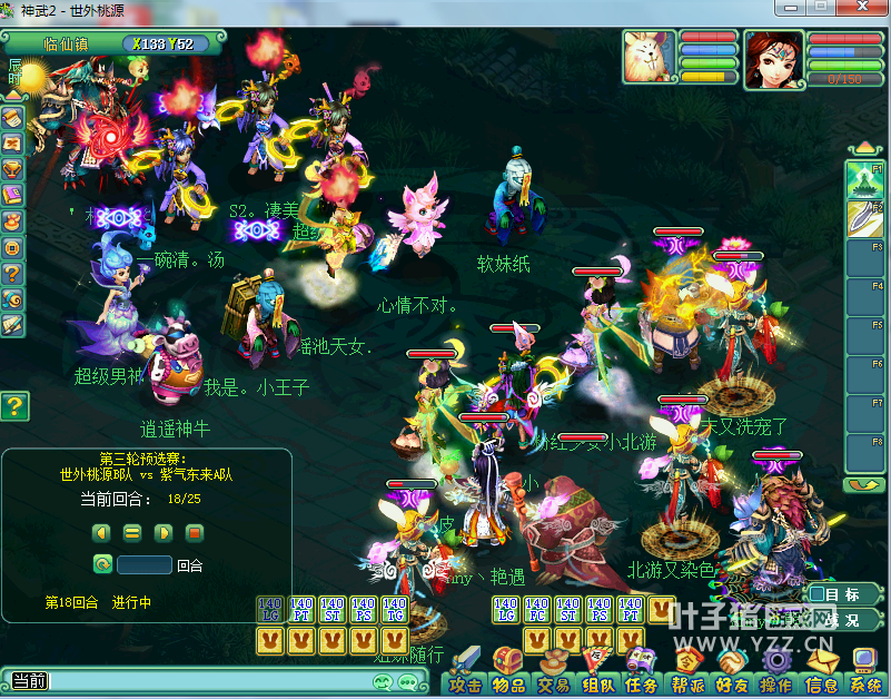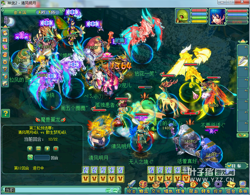 相关资讯: 清风明月A队VS醉生梦死A队 清风A队:TM PT FC LG ST (龙飞阵) 醉生A队:FC WZ ST LG DF (风扬阵) 风扬阵大克龙飞阵,观战方清风A队最近似乎不再状态,时常都有失误操作,就看看这场年度冠军赛是否会让他们打起精神全力应战,首发4飞花加仙兽,一速天魔;对战方醉生A队,之前由导演指挥的暴力输出队,也是战绩赫赫,首发同样五法宠加一只仙兽,FC二速喝酒,刚刚开场一回合,场上五个单位抖动,看来是有大动作;观战方飞花点啥对战方FC,满愤怒倒地;对战方清掉观战方一只仙兽,随后观战方也开始清BB守尸,但对战方这回合并没有拉起FC,接着观战方一举封住对战方WZ,对ST放下,开一波飞机,对战方场上局面已经有点难看了;在第6回合打掉了DF的灵动,观战方虽然没有封中,但是并不阻碍ST趁此良机疯狂点杀DF,最后跟一个千叠,简直就是教科书般的完美点杀套路;从这里便可以看出观战方这局还是很稳的,随后又完美的预判,保住了ST的BB,对战方越来越找不到突破口,局面已经倾向于观战方了;堪称翻盘神技的风阵阵法更是难看,只冻住一个单位,这简直没法玩了;最后完美恭喜清风A队获得本轮胜利。 世外桃源B队VS紫气东来A队 世外B队:LG FC ST PS PT (虎翼阵) 紫气A队:LG PT ST PS TG (虎翼阵) 双方都开虎翼阵,从变身卡和首发宠来看,观战方硬件上似乎是优于对战方的;观战方首发五法宠,FC一速,对战方首发隐身宠...PS二速,开场观战方选择点杀对战方ST,应声倒地不留情面;对战方开一把魔免防观战方法宠,对战方BB还是很耐揍的;站了几乎好几个回合,说到PS,就是夺命蛛丝配合的点杀套路了,如今PS也是服战常客了;对战方PS一个蛛丝套并没有给到夏末,但是点杀依旧无情的进行,观战方PT倒地;然后由LG尾速拉起来,迅速的恢复,与封杀对战方TG同时进行;观战方局面已经完全被打破,只能跟着观战方的套路走;恭喜世外B队取得本轮胜利。 扬名立万A队VS碧雪情天A队 扬名A队:FC PT TC LG TM(风扬阵) 碧血A队:TC LG WZ PT FC(龙飞阵) 风扬阵大克龙飞阵。开场观战方的TM一速封封住了对战方FC,对战方二速FC封住了对战方的TC,开始碧血的一个输出跟一个封系都被对方给封住了。第三回合对战方的TC还有PT都喝了酒,在TC喝酒后,观战方的TC抓住机会对对战方的TC使用横扫千军成功放倒了对方,使对方浪费了当前的怒气,时机抓的刚刚好。在第四回合对战方的WZ用药救活了TC,PT趁机使用了玉清诀解除了所有人的异常状态,观战方的TC趁着这个机会也为自己的仙兽卡了个血。观战方的宝宝速度比较集中,能够对对方造成较大的伤害。观战方对对战方的WZ进行了集火,接着观战方PT使用了SH是全队的血量恢复接近全满。对战方不断地处于劣势,但是在第12回合使用了一个CH是全队在劣势中拯救了回来。观战方的TC输出强悍,给对战方造成了相当大的伤害。对战方的队员相继地倒下,然后被救回。对战方的行动相当地被动,数个回合之后差距明显地被拉大了。最终恭喜扬名A队获得本轮胜利。 [编辑:Hi、何同學]