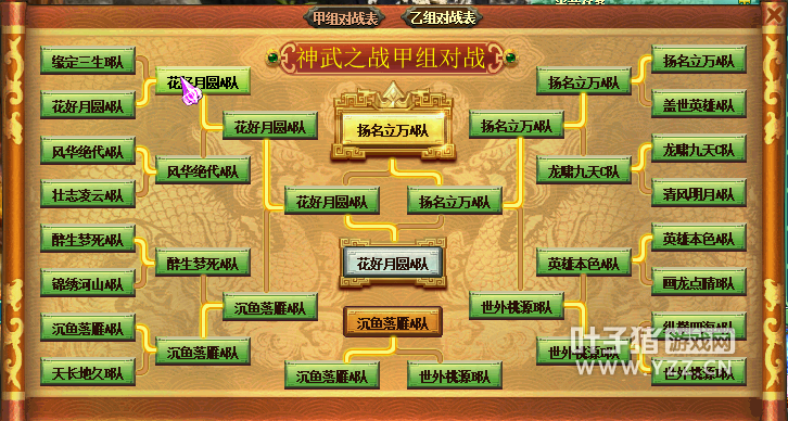 相关资讯: 对战表 第五十一届神武之战完美落幕,经历了两天各大强服的厮杀,最终由扬名立万A队获得了本届神武之战服战的冠军,其队员′兰陵王.、玉观音"、铁浮屠"、含笑.Ssssづ、′小射魔先后克制各大强服获得本届服战组冠军,真是可喜可贺。 而本届服战的亚军则是由本届服战的花好月圆A队获得,其成员分别是甜心小美人.、断桥"·、"彩麟、花好球王.、"皇太子.み,我们在这里期待他们下一联服战有更加出色的发挥。 本届服战的季军队伍是由沉鱼落雁A队获得,其成员分别是:ミ曹大大ミ、ミ冷别赋ミ、一世风流、巴黎街头挚ai昕,圈圈圆圆圈圈。相信很多观看过他们比赛的玩家都会感叹,运气好像有点差。但是取得季军的成绩已经足 够证明他们具备了冲击冠军的实力。 叶子猪神武专区祝贺本届服战取得优异成绩的玩家,也代表神武众多喜爱服战的玩家感谢你们为大家带来的精彩赛事,录像汇总和获奖队伍采访稍后放出,敬请期待。 [编辑:Hi、何同學]
