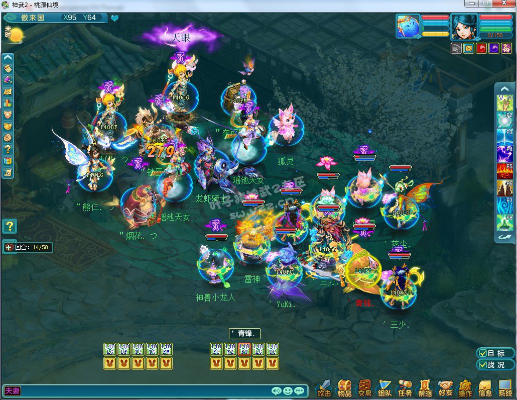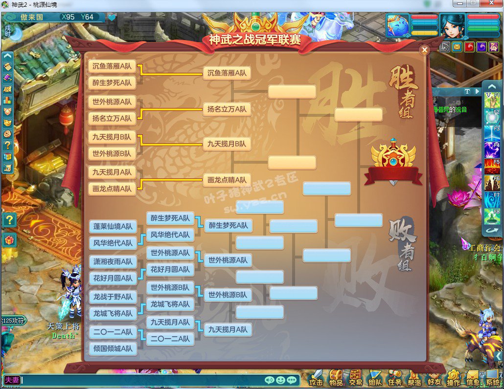 这一轮的淘汰赛PK,胜者组轮空,只有败者组比赛,败者组对战胜利者晋级,失败队伍直接淘汰;对战表奉上。 九天揽月A队VS二0一二A队 九天A队:FC WZ PT LG TC (龙飞阵) 二0A队:LG DF TC TG FM (鸟翔阵) 鸟翔阵小克龙飞阵,观战方九天A队首发2仙兽1神兽1狐灵1月光;对战方二0A队首发4单法1画魂。开场对战方TG一速迷乱观战方LG,观战方FC二速喝酒,WZ三速喝酒,对战方FM四速喝酒,DF五速拉环,观战方PT开灵动。对战方TC一速定神诀清宠,观战方TC喝酒,观战方LG的BB比对战方LG还要慢,观战方LG尾速喝酒。对战方TC先发清掉了观战方PT的BB,TG喝酒,FM、DF双笑里观战方LG。观战方TC破血清宠。对战方TC继续先发清宠。观战方TC运筹加身。双方LG双龙清宠。对战方一速TG笑里观战方WZ,观战方FC催眠对战方DF,双方的前排宠都被清掉一个。双方开始互相笑里。被嘲讽的状态下,观战方直接横扫对战方DF,似乎是要点杀。BB全跟,最后LG的千叠,点杀失败。观战方失败就由对战方开始了表演,法宠全部跟点杀观战方TCV,奈何对战方TC被观战方直接催眠,简直无情。双方的第一轮点杀均以失败告终。观战方的催眠似乎是百发百中?随后观战方开始清对战方刚刚拉出来的孩子。双方都以稳中求胜。运气似乎并不是那么好,对战方两个单位被催眠都没有被打醒,只能自己动手,浪费了两个单位的操作。观战方继续清宠,野兽加起。对战方FM给到观战方TC放下,DF解TC,TC一鼓作气打到观战方TC身上,但是被两次保护,导致残血,紧接着观战方就给喂上了一个血限,这一轮的点杀以失败告终。而观战方在上次强杀对战方DF失败之后,这次继续选择点杀对战方DF,逆转给加上,破血飞出,奈何对战方DF直接防御。这一轮的点杀再一次以失败告终。从这里可以看出双方的势均力敌。最终58回合都没能决出胜负,以评分判定观战方九天揽月A队获得胜利。 世外桃源A队VS花好月圆A队 世外A队:TM TG PT LG TC (龙飞阵) 花好A队:TC LG PT FM TM (龙飞阵) 双方都开龙飞阵,观战方世外A队首发3仙兽2瑶池;对战方首发2瑶池1神兽1雷神1龙虾;开场对战方TM一速封住观战方TM,观战方TC先发清宠,对战方TC同样先发清宠,从速度上看,观战方TC是物理一速。观战方清对战方LG的BB,对战方清观战方TM的BB,观战方TG喝酒,PT喝酒,对战方PT开灵动,FM喝酒。观战方在第3回合展开了第1轮的点杀直接横扫对战方TC,LG千叠下滑到了PT身上,打出了近2500的伤害。对战方尾速LG烽火清掉了TC的BB。紧接着对战方TM笑里观战方TM,高速拉起了TC,直接后发将观战方TC点杀倒地。在第8回合,观战方再次点杀对战方TC,并且触发了断魂状态,有点伤。下一秒观战方TC就被对战方TM影风车直接残血打死。出来混总是要还的,观战方TC简直暴走,一鼓作气横扫对战方TM,5刀致命,对战方TM倒地,完美封杀教程。观战方高速拉起了TC,开了一波阵法, 恢复下状态,LG喝女儿红想要骗一波愤怒。但是对战方LG变得是感知蝴蝶,并没有给观战方这个机会。对战方展开反击,一直压制观战方TC的血限。观战方LG一个烽火再次守尸对战方TC。双方较量了59个回合依然没有分出胜负,最终依照评分恭喜世外A队获得胜利。 [编辑:Hi、何同學]