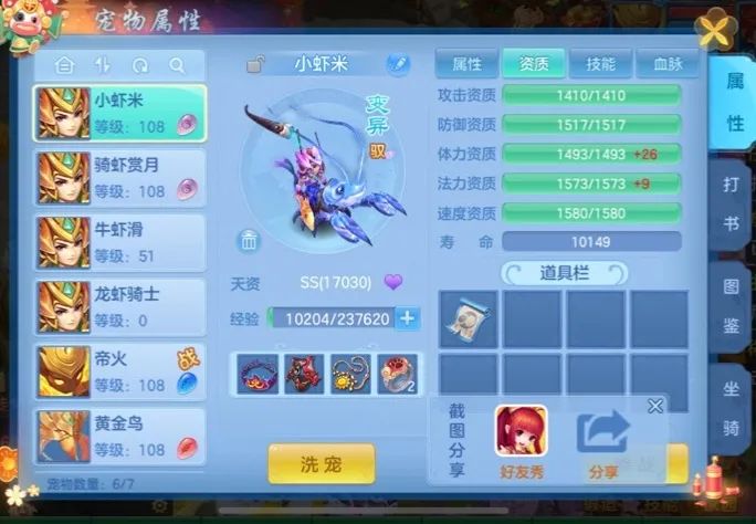 《神武4》手游新鲜事时间到!又有不少玩家投稿了他们得意的宠物、装备、武器,小编一点都不羡慕,真的,一起来当“柠檬精”吧! 少侠'守心' 人家出了三红,我一点都不羡慕系列 无忧:虽说两件三红装备摆在无忧面前,无忧却一点也不紧张。(见过大世面的熊猫)毕竟这三个作用略小特技及追捕易成长的鞋子+指挥易成长化险为夷的腰带还是略有遗憾呀~ 少侠'倾心、' 四技红心天花板资质 无忧:跟满技能比就差那么一个技能的剑灵、兔子,单说资质可能比不少满技能都要高,无忧觉得这两只宝宝已经可以称得上是四技能的天花板了! 少侠'A张' 他们都说我这只虾没啥用,无忧哥,你觉得有用吗…… 无忧:无忧觉得少侠的“小虾米”无论是成长、资质还是技能格子来说,都是非常优秀的。就是技能方面可以调整一下,高级毒、低级法波可以改成高敏捷、高防御,驭兽技能改成坚守+奇袭,打造成一只耐敏法宝宝。 如果想要克制技能,也可以选择把高强壮或者高灵蕴改成高审判或高感知。高强壮不要的话,需要佩戴星海神鲲血脉。 少侠'Andy鄭偉鋒' 这成长.这zz.被我打成反制.已经被多个朋友说我丧心病狂了 无忧:本如果打成耐攻特殊或抢速血攻特殊,可以非常具有威胁力的死骑。却被少侠打成一只反制特殊,打成反制就算了,少侠还给它配了低神佑,让其被审判克的死死的!少侠你的良心不会痛吗... 少侠'Sunny day' 这算不算是天花板帝火? 无忧:这只暴力竞技追帝火确实非常优秀,但无忧还是喜欢带驭兽乘胜+恃势。毕竟一出手分分钟连打四刀的时候,真的很帅! 扫一扫以下《幻唐志手游》二维码,根据自己的手机(安卓版、IOS版),下载对应的幻唐志手游客户端!赶紧邀请小伙伴,一起畅玩游戏! [编辑:ssc]