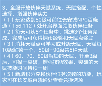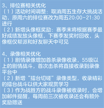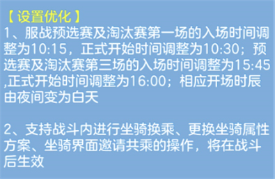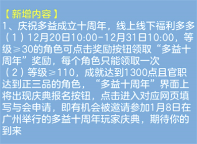 新增内容 1.多益成立十周年活动 (1)又有新礼包:十周年礼包,30级以上角色点击奖励按钮领取 (2)1月8日会在广州举办十周年玩家庆典,满足等级、成就、官职三个条件的朋友可以申请参加庆典,申请后有机会获得参与资格 2.坐骑染色全服开放,同时开放坐骑鳐灵的染色,喜欢鳐灵的朋友自己注意了 坐骑染色总体规则是: (1)飞行坐骑,比如莲花、破天、星尘,本体、装饰、光华这三个部位,每个部位染色需要消耗20个炫彩晶 (2)双人坐骑和鳐灵,对本体、装饰、光华这三个部位染色时,每个部位需要消耗1个幻灵水 (3)幻灵水在商城奇货分页购买,价格为800金币/个 (4)炫彩晶可在商城奇货分页购买,价格为30金币/个。也可以用排位赛荣耀点在排位赛商店里购买,价格为45荣耀点/个 3.伙伴天赋的介绍在上几周的公告解读中已提及,这周主要增加了积分兑换伙伴任务次数的功能,在NPC处消耗40积分可以增加2次任务领取次数 算是土豪玩家的福音吧,可以更快把伙伴天赋点满。徘徊在温饱线的朋友看自己情况决定是否要增加任务领取次数咯 4.新增聊天频道:新手频道 楼主之前在天下无双创建新号玩的时候,在帮派和世界频道说话基本上很少有人搭理,也很难融入其他人在聊的话题 新手频道可以打字或使用语音交流,这个更新算是萌新玩家的福音,可以在新手频道里和其他新手打情骂俏,好评 值得注意的是,人物等级较高时,就不会被纳入新手频道,所以还是继续在世界和帮派吹水吧 5.之前只有队伍即时语音,现在好友即时语音也开始开放了。以后可以一边玩游戏,一边和游戏里的基友、妹子语音聊天了。具体效果待体验 设置优化 1.这周末就是服战了,打服战的朋友注意啦:服战时间预选赛和淘汰赛时间进行调整,部分场次开场时辰从夜间变成白天,物理系可以根据队伍情况考虑变非夜战卡片,楼主觉得金刚狼也是不错的选择 2.战斗内支持坐骑相关操作,现在可以在战斗中恣意地邀请基友上马了 3.排位赛时间继续调整:取消周五生存大挑战活动,原周六的排位赛改为周五20:00-21:30进行,同时新增赛季奖励:头像框,英雄一阶以上段位可获得 看来楼主要更努力上分了,既能拿荣耀点兑换炫彩晶染坐骑,又可以争取在赛季结束的时候拿个头像框,以后在帮里说话更有底气了有木有 4.录像继续优化 (1)应该是55级以上的剧情战斗,首次击杀会直接被收录,所以快看看在你的服,还有哪些剧情是没被通关的,赶紧去首杀装个比 (2)楼主一直很喜欢打跨服擂台和看擂台的录像,之前一直要到擂台那里的NPC查看,现在录像里也增加擂台战斗录像,以后可以在战斗中观看了,好评 (3)作为战胜方的战斗录像被收录时,会获得额外奖励,所以有机会被收录的朋友平时还是认真战斗吧,一不小心就被收录变成名人拿奖励了 5.扩大了战斗中药品使用界面,之前显示9个格子,现在可显示16个格子,以后身上药品较多时,不用再像之前一样频繁地翻页找药了 6.楼主由于是辅助门派,身上的特技装备略多,腰带还分指挥和愤怒,再加上捉鬼获得的一些环装,身上简直乱得不行,想换装备的时候找起来很麻烦 希望这个优化能解决楼主的问题,待楼主具体体验看看。 本周的更新解读就到这里了,有问题大家提出来互相解答 扫一扫以下《幻唐志手游》二维码,根据自己的手机(安卓版、IOS版),下载对应的幻唐志手游客户端!赶紧邀请小伙伴,一起畅玩游戏! [编辑:Hi、何同學]