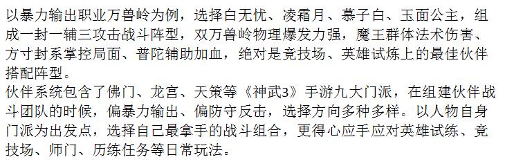 神武3手游最强伙伴搭配攻略,培养出最强的拍档!