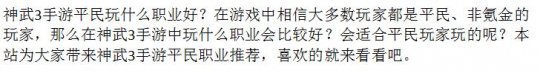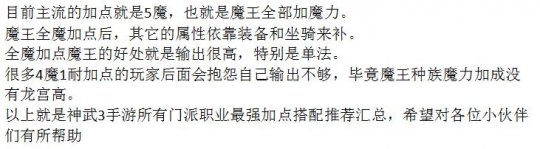 神武3手游龙宫加点推荐 神武3手游普陀山加点推荐 神武3手游盘丝岭加点推荐 神武3手游万兽岭加点推荐 神武3手游佛门加点推荐 神武3手游中的魔王加点推荐 【神武3手游平民职业推荐攻略】 大家在职业的选择上面可以根据这个理论: