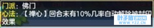 门派心法 【禅心】每回合末有一定几率自动解除被封印效果