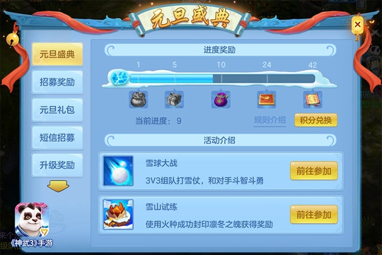 新年伊始,万象更新!《神武3》手游元旦活动欢乐上线,还有机会变身鲨鱼,趣味玩法、丰厚奖励邀你一起共度元旦佳节! 庭院养鱼迭代 全新玩法趣味来袭 养鱼新增 青蟹、金鱼、鳝鱼、龙鱼、海龟 ,可在钓鱼场景将钓到的新鱼宝宝放养到家园河流。鱼交换和鲨鱼变身不再作为养鱼奖励,而调整为独立玩法。如今,玩法门槛降低,诸位少侠都可以直接进行成年鱼交换的玩法啦。 在家园双击河流装饰,再点击鱼占卜按钮可开始占卜,占卜需要消耗占卜配方对应的鱼,或者少侠也可直接使用1000银币变身一次,占卜后自身会变成随机鱼造型。培养并使用珍稀水晶可占卜出珍稀鱼变身,达到指定养鱼评分或者名片等级还能占卜出稀有魔鬼鱼和鲨鱼变身。 养鱼奖励也迎来调整,原来需100养鱼评分才能领取养鱼礼盒,现喂鱼进度满后即可领取,开取礼盒可获得物品奖励哦。原来养鱼物资的中级兑换需500养鱼评分解锁,调整为无需评分条件直接解锁。当养鱼评分达到100分,可以解锁变身水晶培养玩法,养鱼评分达到1000可购买魔鬼鱼变身水晶。 元旦活动欢乐来袭 缤纷好礼开启2019 新篇章 元旦将至,神武世界到处洋溢着辞旧迎新的热闹气氛,《神武3》手游元旦专属活动“烟花贺元旦”“倒数迎新年”联袂登场,多样玩法、缤纷好礼邀你一起共度元旦佳节。 2018年12月30日至2019年1月10日,每天10:00至20:00 ,每隔15分钟,世界各地图将会刷新烟花,30级以上的少侠们可以前往各大场景地图燃放烟花庆贺元旦佳节、赢取丰厚奖励。在燃放烟花时,还有可能触发各种趣味随机事件,成功挑战随机事件后更有机会获得 “财神祝福”和“新年烟花” 道具。 2018年12月31日,在临近新年的最后时刻,《神武3》手游将和全服少侠一起倒数计时,燃放世界烟花迎接2019的到来!与此同时,《神武3》手游还将发放 三个世界红包 ,为三界少侠送出最诚挚的节日问候! 与此同时,《神武3》手游元旦盛典火爆进行中,玩家参与“雪球大战”“雪山试练”等活动时,每天每个活动最多可以增加1点元旦盛典进度,分数达到指定阶段后将会解锁对应奖励。 扫一扫以下《幻唐志手游》二维码,根据自己的手机(安卓版、IOS版),下载对应的幻唐志手游客户端!赶紧邀请小伙伴,一起畅玩游戏! [编辑:叶子猪小秘书]