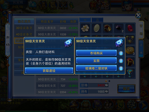 喜欢《神武》手游版的玩家都知道,该游戏的玩法非常的丰富,而且有很多特色的游戏系统,2D清新唯美的场景吸引了不少新手玩家。但最近有很多朋友问到小编,《神武》手游版中如何摆摊?本期小编就为大家整理了一下,详细介绍一番《神武》手游中的交易系统吧! 《神武》手游版交易系统除了系统提供商店外,就是卖家和买家的交易平台,交易系统主要分为两个部分:市场和逛摊。先说说市场吧! 【市场】 游戏主界面的左上角就有一个【交易】,点击即可进入交易市场,市场就是系统商店提供玩家购买各种珍稀的游戏道具,包括打造新装备所用到的材料(装备灵、宝石、如意宝石),等级越高的装备灵,其价格就越昂贵。其中大唐男灵和天宫男灵的装备灵价格是最为昂贵的,这就证明这两个职业是多么的热门枪手。 当然,如果你不想直接在市场购买,想知道该物品有什么其他获取途径呢?那就直接点击一下物品,就会提示你该物品的其他获取途径,一目了然。例如,50级的天宫男灵,购买一个就得花费3420的银币,砸砸~真心的贵啊!买不起怎么办?当然就看一下有木有其他的获取途径啦!其实,天宫男灵还可以在琉璃塔二层封妖可以有几率获取,而且打宝图任务,抽奖也是有很大几率可以获得的。并不是一定就要在市场中购买,当然这也是个人的想法观点而已。