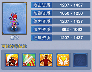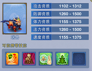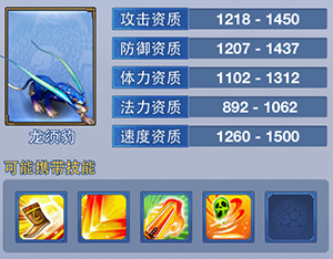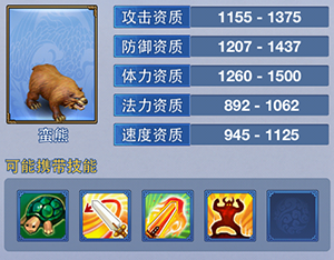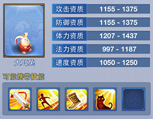 《神武》手游中有哪些宠物呢?相信很多新手玩家都想知道的吧!人物等级的高低决定你可携带的宠物,下面小编来为大家带来了神武手游宠物图鉴一览,各个等级阶段的宠物宝宝图鉴给大家分享了,哪个宠物才是你最喜欢的呢?用心挑选一下吧! 【0级可携带的宠物】 【大耳兔】 攻击资质:1155-1375 防御资质:1155-1375 体力资质:1207-1437 法力资质:997-1187 速度资质:1050-1250 可携带的技能:反击、灵敏、敏捷、灵性 宠物获取途径:第一次登陆游戏的新玩家,系统会自动赠送宠物大耳兔 【吉祥】 攻击资质:1207-1437 防御资质:1207-1437 体力资质:1102-1312 法力资质:945-1125 速度资质:1207-1437 可携带的技能:高级防御、高级幸运、连击、勇敢、再生 宠物获取途径:对接待等级35级以下宠物洗宠时,有概率获得吉祥。在任何暗雷场景遇敌时,也有较低的概率获得。(ps:领取神武手游新手礼包,100%获得吉祥宝宝、洗宠丹、金币等) 【小葫芦】 攻击资质:1207-1437 防御资质:1207-1437 体力资质:1102-1312 法力资质:945-1125 速度资质:1207-1437 可携带的技能:高级神迹、高级幸运、必杀、驱鬼、永恒 宠物获取途径:对接待等级35级以下宠物洗宠时,有概率获得吉祥。在任何暗雷场景遇敌时,也有较低的概率获得. 【5级可携带的宠物】 【霜狼】 攻击资质:1207-1437 防御资质:840-1000 体力资质:1050-1250 法力资质:735-875 速度资质:1312-1562 可携带的技能:偷袭、连击、高级追击、驱鬼、夜战 宠物获取途径:1.前往长安城找到宠物交易中心,可购买所需的宠物。(购买的宠物一般都是野生宠物,因为宝宝比野生宠物更有培养价值,所以需要再宠物界面洗宠后才能变成宝宝。) 2.前往大雁塔一层捕捉,大部分是野生宠物,有可能遇到宝宝。 【强盗】 攻击资质:1102-1312 防御资质:1050-1250 体力资质:1155-1375 法力资质:1050-1250 速度资质:1155-1375 可携带的技能:强力、连击、烈火、强壮 宠物获取途径:1.前往长安城找到宠物交易中心,可购买所需的宠物。(购买的宠物一般都是野生宠物,因为宝宝比野生宠物更有培养价值,所以需要再宠物界面洗宠后才能变成宝宝。) 2.前往大雁塔一层捕捉,大部分是野生宠物,有可能遇到宝宝。 【飞贼】 攻击资质:1155-1375 防御资质:1102-1312 体力资质:1050-1250 法力资质:840-1000 速度资质:1207-1437 可携带的技能:夜战、反击、追击、驱鬼、偷袭 宠物获取途径:1.前往长安城找到宠物交易中心,可购买所需的宠物。(购买的宠物一般都是野生宠物,因为宝宝比野生宠物更有培养价值,所以需要再宠物界面洗宠后才能变成宝宝。) 2.前往大雁塔一层捕捉,大部分是野生宠物,有可能遇到宝宝。 【15级可携带的宠物】 【花魂】 攻击资质:945-1125 防御资质:1155-1375 体力资质:1155-1375 法力资质:1155-1375 速度资质:1155-1375 可携带的技能:落岩、火系弱点、灵性、高级魔法反击 宠物获取途径:1.前往长安城找到宠物交易中心,可购买所需的宠物。(购买的宠物一般都是野生宠物,因为宝宝比野生宠物更有培养价值,所以需要再宠物界面洗宠后才能变成宝宝。) 2.前往大雁塔二层捕捉,大部分是野生宠物,有可能遇到宝宝。 【蛮熊】 攻击资质:1155-1375 防御资质:1207-1437 体力资质:1260-1500 法力资质:892-1062 速度资质:945-1125 可携带的技能:迟钝、反击、高级必杀、强力 宠物获取途径:1.前往长安城找到宠物交易中心,可购买所需的宠物。(购买的宠物一般都是野生宠物,因为宝宝比野生宠物更有培养价值,所以需要再宠物界面洗宠后才能变成宝宝。) 2.前往大雁塔二层捕捉,大部分是野生宠物,有可能遇到宝宝。 【猫女】 攻击资质:1207-1437 防御资质:1050-1250 体力资质:1207-1437 法力资质:894-1062 速度资质:1207-1437 可携带的技能:夜战、高级连击、感知、幸运 宠物获取途径:1.前往长安城找到宠物交易中心,可购买所需的宠物。(购买的宠物一般都是野生宠物,因为宝宝比野生宠物更有培养价值,所以需要再宠物界面洗宠后才能变成宝宝。) 2.前往大雁塔二层捕捉,大部分是野生宠物,有可能遇到宝宝。 【25级可携带的宠物】 【龙须豹】 攻击资质:1218-1450 防御资质:1207-1437 体力资质:1102-1312 法力资质:892-1062 速度资质:1260-1500 可携带的技能:敏捷、冲击、高级必杀、驱鬼 宠物获取途径:1.前往长安城找到宠物交易中心,可购买所需的宠物。(购买的宠物一般都是野生宠物,因为宝宝比野生宠物更有培养价值,所以需要再宠物界面洗宠后才能变成宝宝。) 2.前往大雁塔三层捕捉,大部分是野生宠物,有可能遇到宝宝。 【灵猿】 攻击资质:1155-1375 防御资质:997-1187 体力资质:1207-1437 法力资质:1155-1375 速度资质:1155-1375 可携带的技能:偷袭、高级凝神、追击、精准 宠物获取途径:1.前往长安城找到宠物交易中心,可购买所需的宠物。(购买的宠物一般都是野生宠物,因为宝宝比野生宠物更有培养价值,所以需要再宠物界面洗宠后才能变成宝宝。) 2.前往大雁塔三层捕捉,大部分是野生宠物,有可能遇到宝宝。 【狐精】 攻击资质:1207-1437 防御资质:1102-1312 体力资质:1155-1375 法力资质:892-1062 速度资质:1260-1500 可携带的技能:雷系弱点、高级慧根、高级感知、灵敏、夜战 宠物获取途径:1.前往长安城找到宠物交易中心,可购买所需的宠物。(购买的宠物一般都是野生宠物,因为宝宝比野生宠物更有培养价值,所以需要再宠物界面洗宠后才能变成宝宝。) 2.前往大雁塔三层捕捉,大部分是野生宠物,