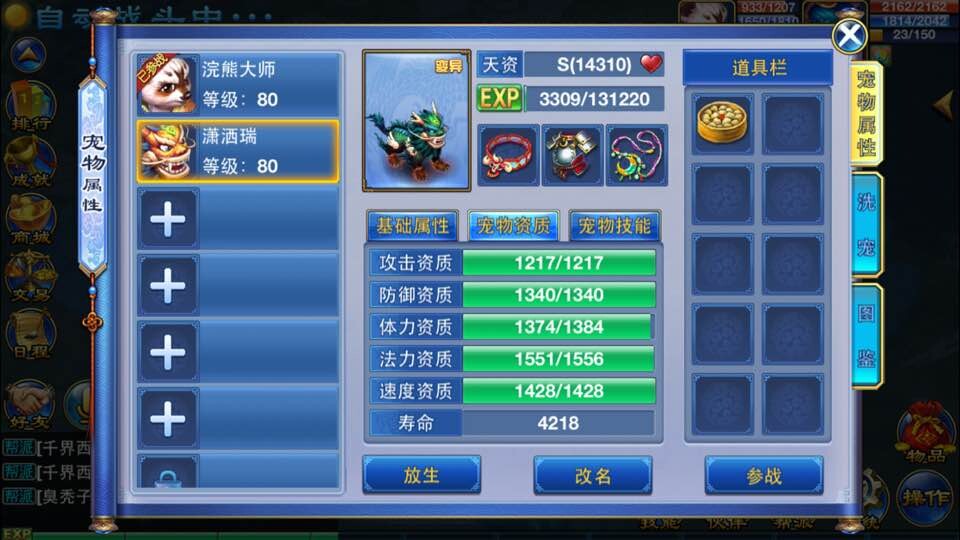 神武手游宠物资质对宠物的影响?神武手游宠物天资对宠物的影响?在《神武》手游中,天资和资质是影响宠物质量的两个最重要的因素,那么,这两个因素对宠物属性的影响有多大呢,让我们一起来看看吧! 这次我们的主角是两个变异极品法宠:变异浣熊大师VS变异瑞兽 首先我们来看看出场双方的资质图 可以看出,两个宠物的资质都是非常不错的,这里需要说明的是,他们的加点方式都是一样的:8魔2耐,那么同样加点的他们属性有什么差别呢,一起来看看吧! 小编总结:由图中的属性对比可以看出,双方的灵力差距不大,因为加点相同,而且双方的法资也差不多,差距比较大的在于速度和防御,可以看到浣熊的敏捷比瑞兽高出17点,可是它的速度确还比瑞兽还要慢7点,因为瑞兽的速度资质比浣熊高了将近150,这150点资质差距就体现出来了,再加上红心的成长比紫心要好,所以造成了这样的差距。 而在耐力上,浣熊资质比浣熊的防御资质要高出将近300,而且可以看出浣熊的宠物加防装备明显要比瑞兽好,浣熊的耐力值也比浣熊要高出15点,可是浣熊的防御比瑞兽高的并不是特别多(90点),这里最主要的原因可能就是在于浣熊是紫心的天资,而瑞兽是红心天资。 由此可见,资质和天资对属性的影响还是很大的,不然怎么会有那么多玩家追求高资质高天资的宠物呢。 扫一扫以下《幻唐志手游》二维码,根据自己的手机(安卓版、IOS版),下载对应的幻唐志手游客户端!赶紧邀请小伙伴,一起畅玩游戏! [编辑:Nttttt]